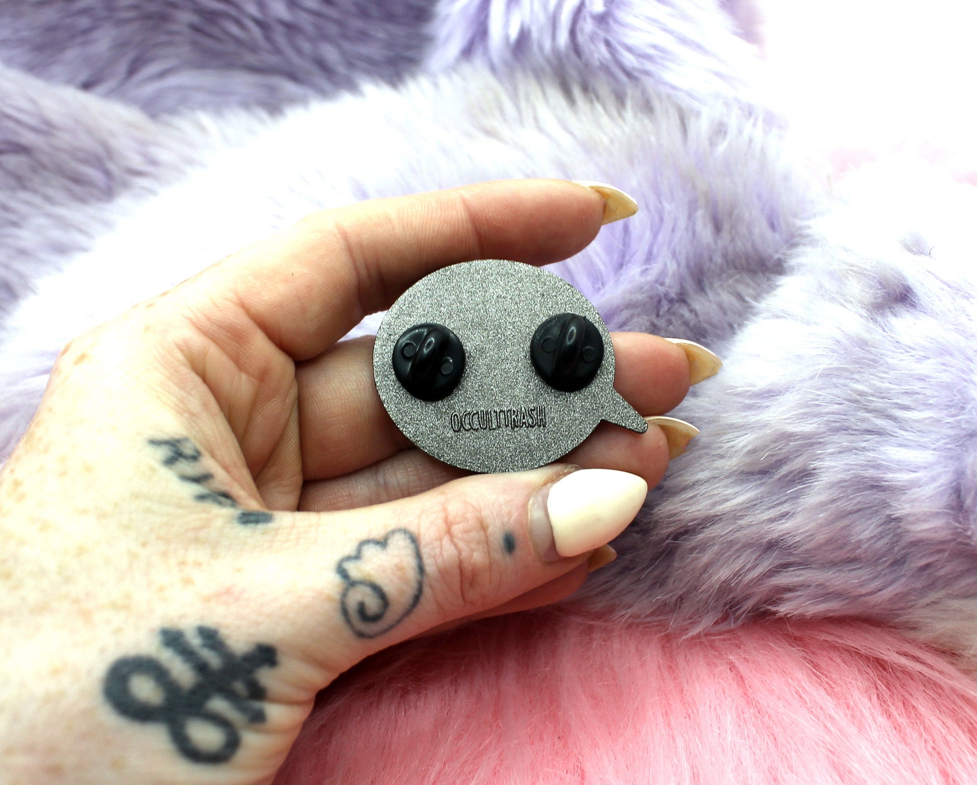 Perfect addition for your ita bag or pin board! This pin has two pins on the back that come with rubber clasps.