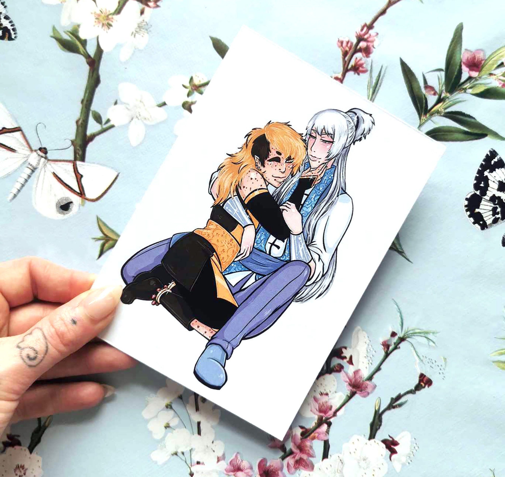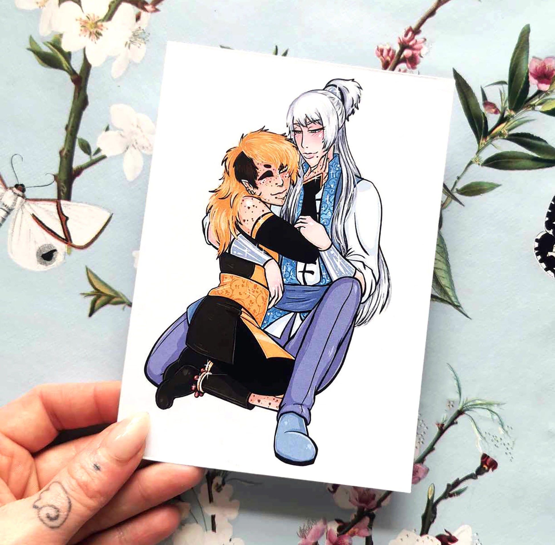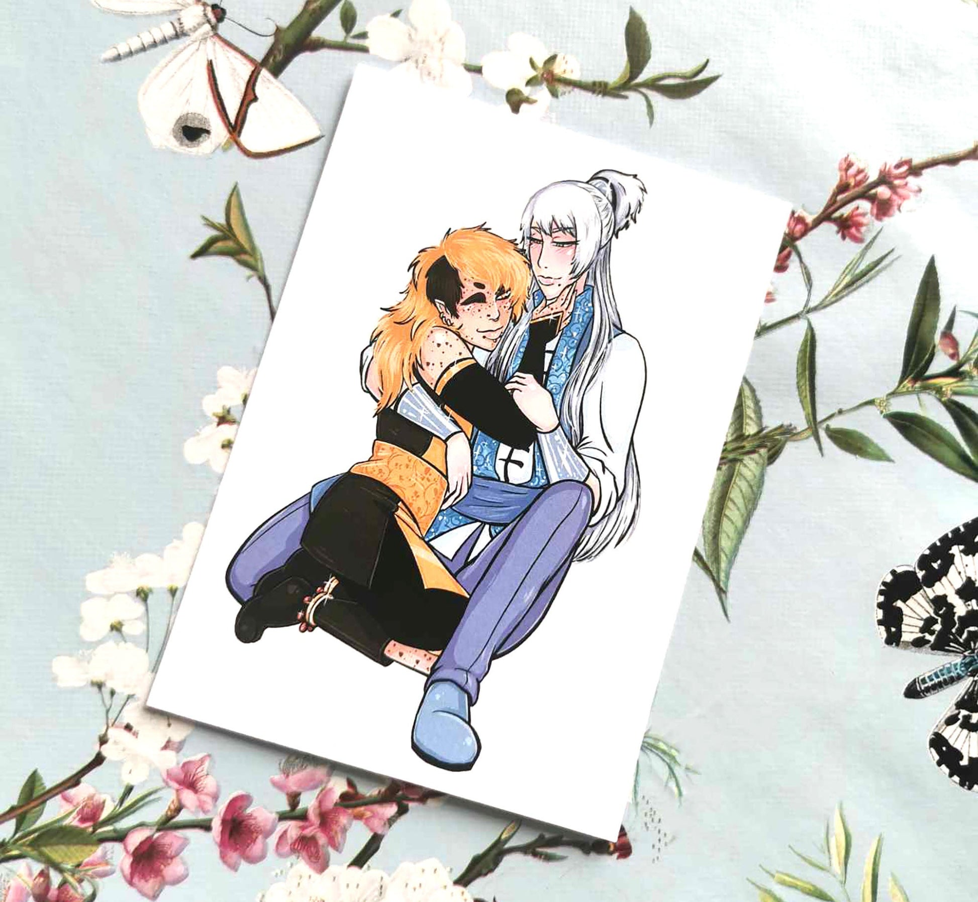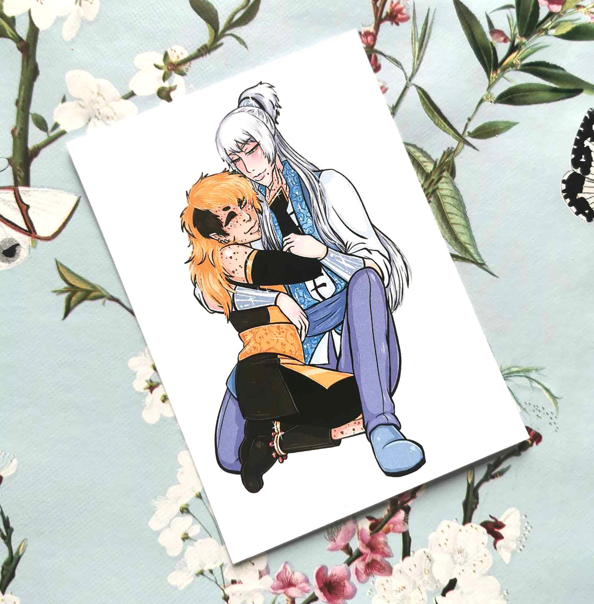 Branwren Kneeling Cuddle A6 Print - The Nightingale Dragon Series
