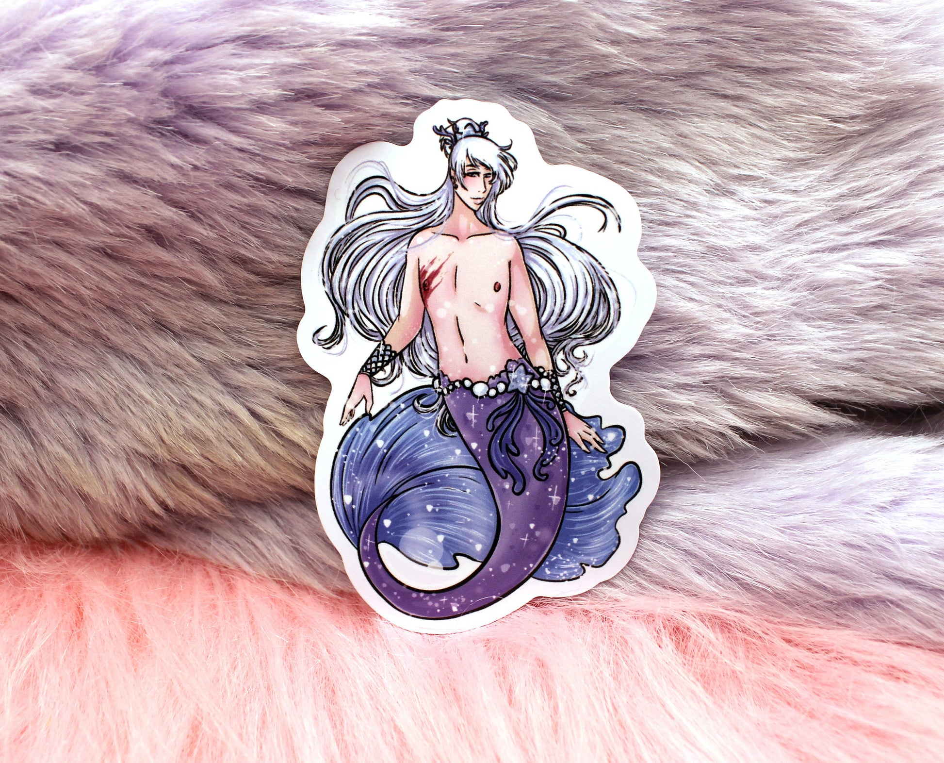 This Brayandli Okan Merman sticker is 8cm in size, made with waterproof vinyl and has a self adhesive peel-able back.