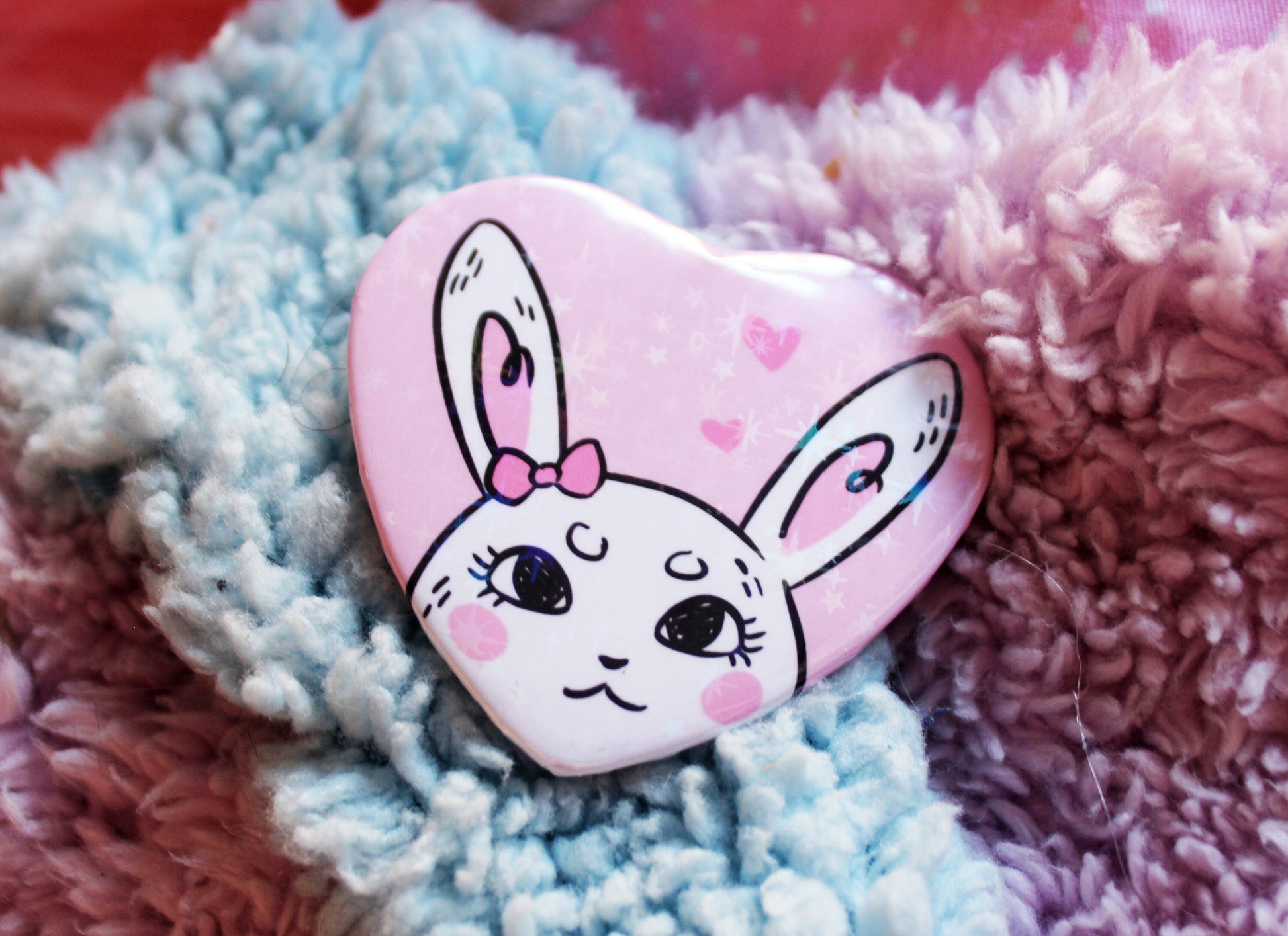 Bunny & Trans Print Holographic Heart Badges (55mm)