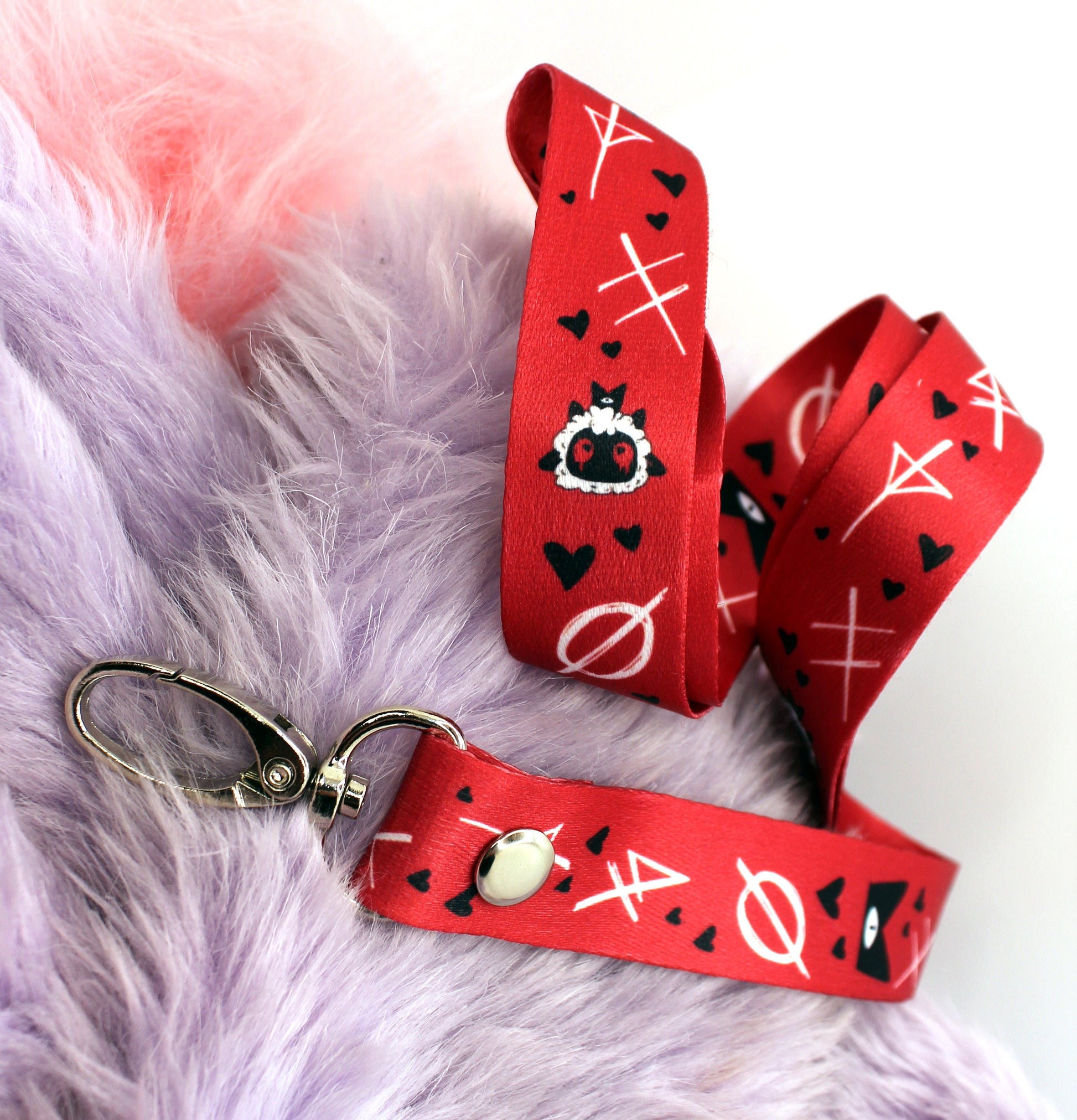 These Cult of the Lamb inspired Lanyards are 2cm by 90cm with a lobster clasp style clip on the end to attach your keys, cards, phone or wallet.