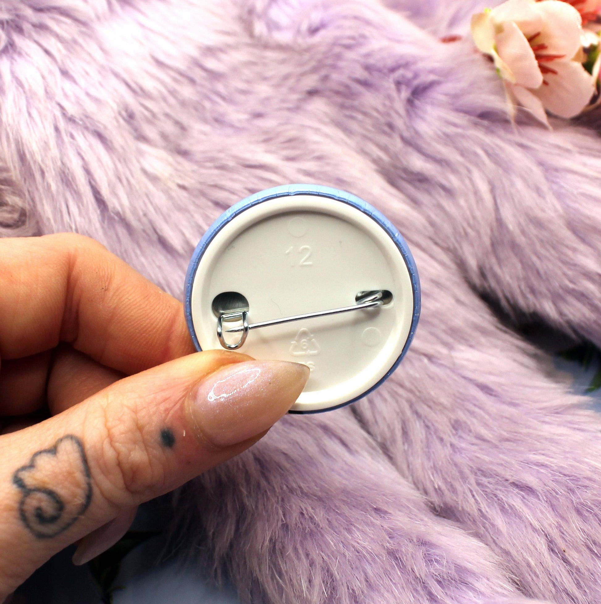 This badge features a close up illustration of 'Derpy Tiger', a character from the Netflix animated film 'Kpop Demon Hunters'. It is 38mm in size with a push-pin back.
