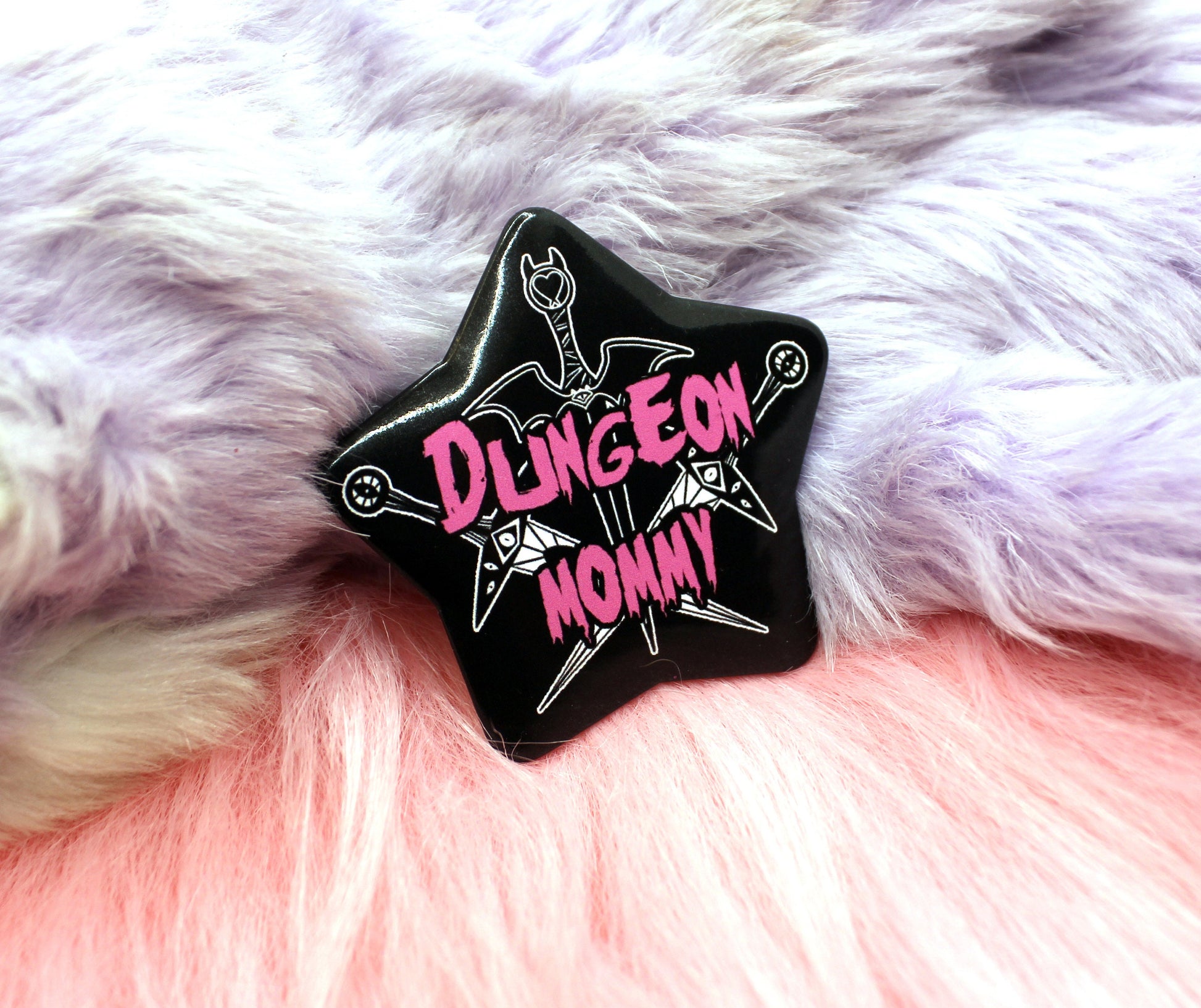 These Dungeon and Dragons inspired Dungeon Mommy star badges are 55mm in size with a pin back.