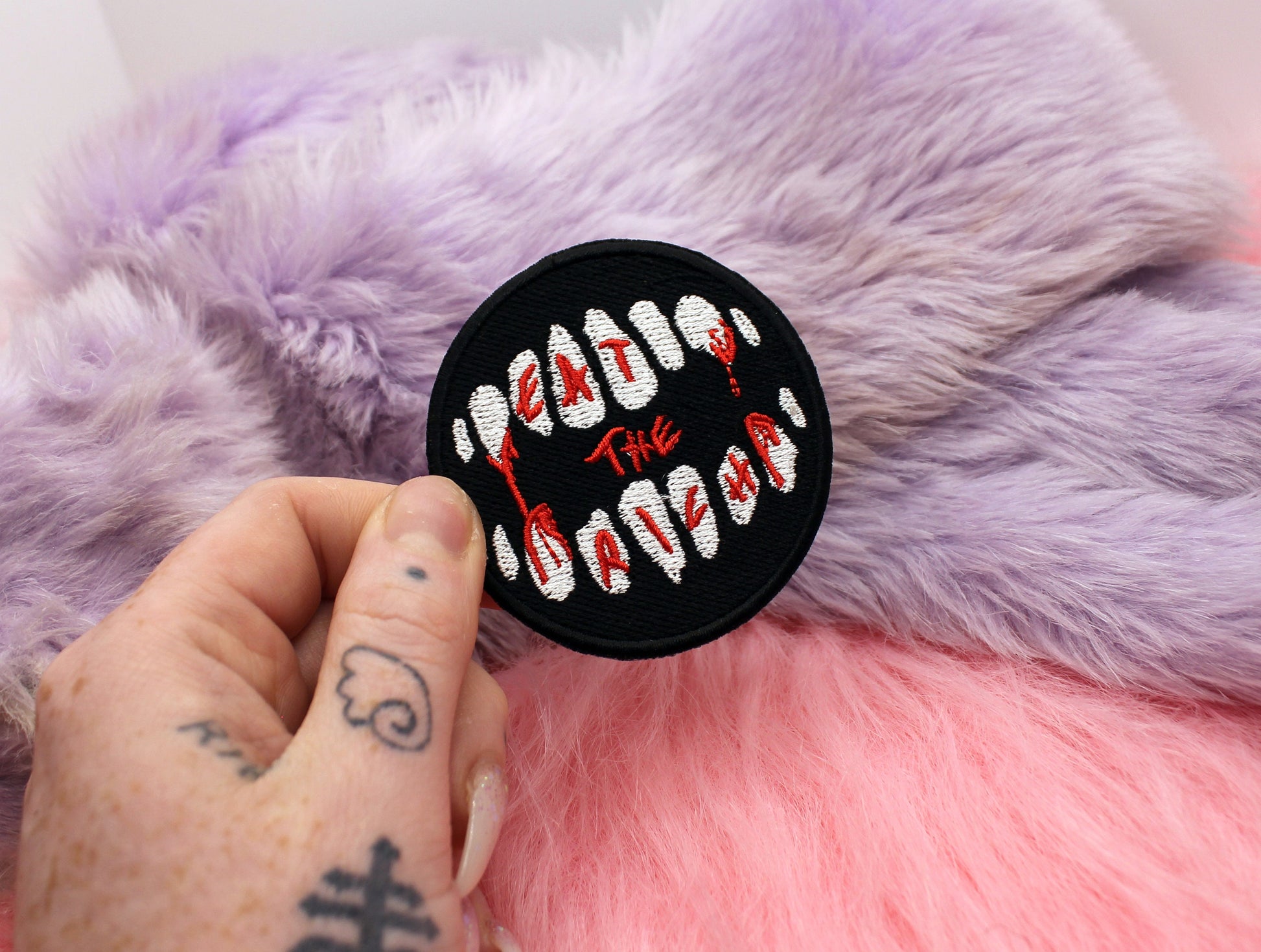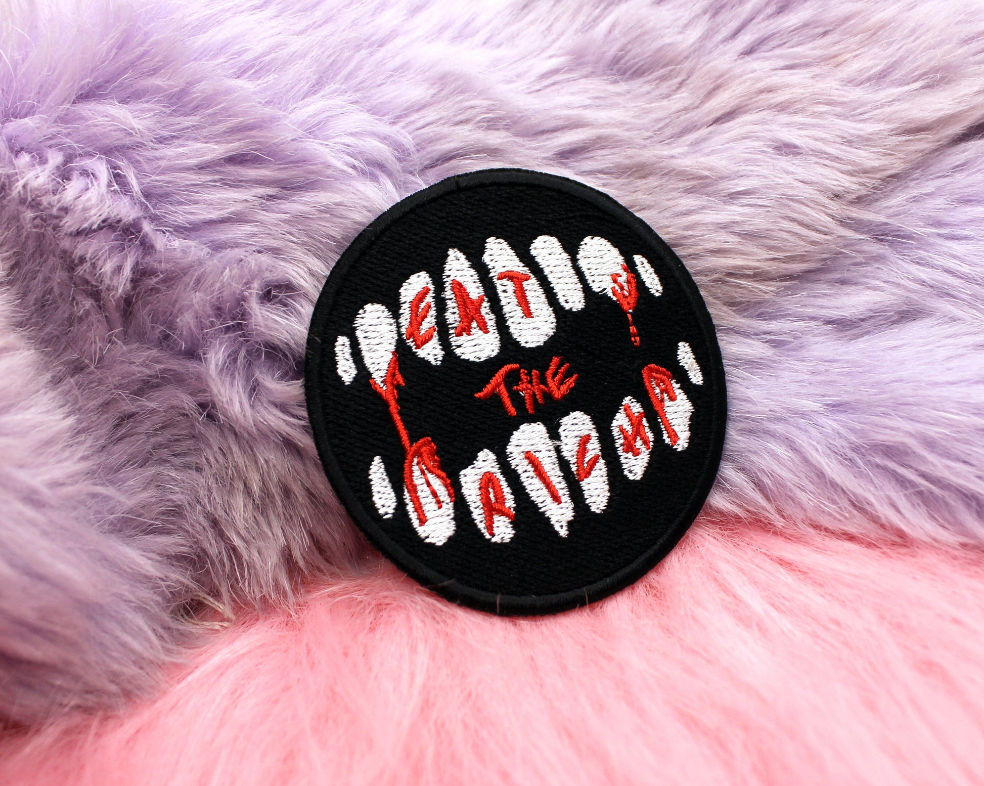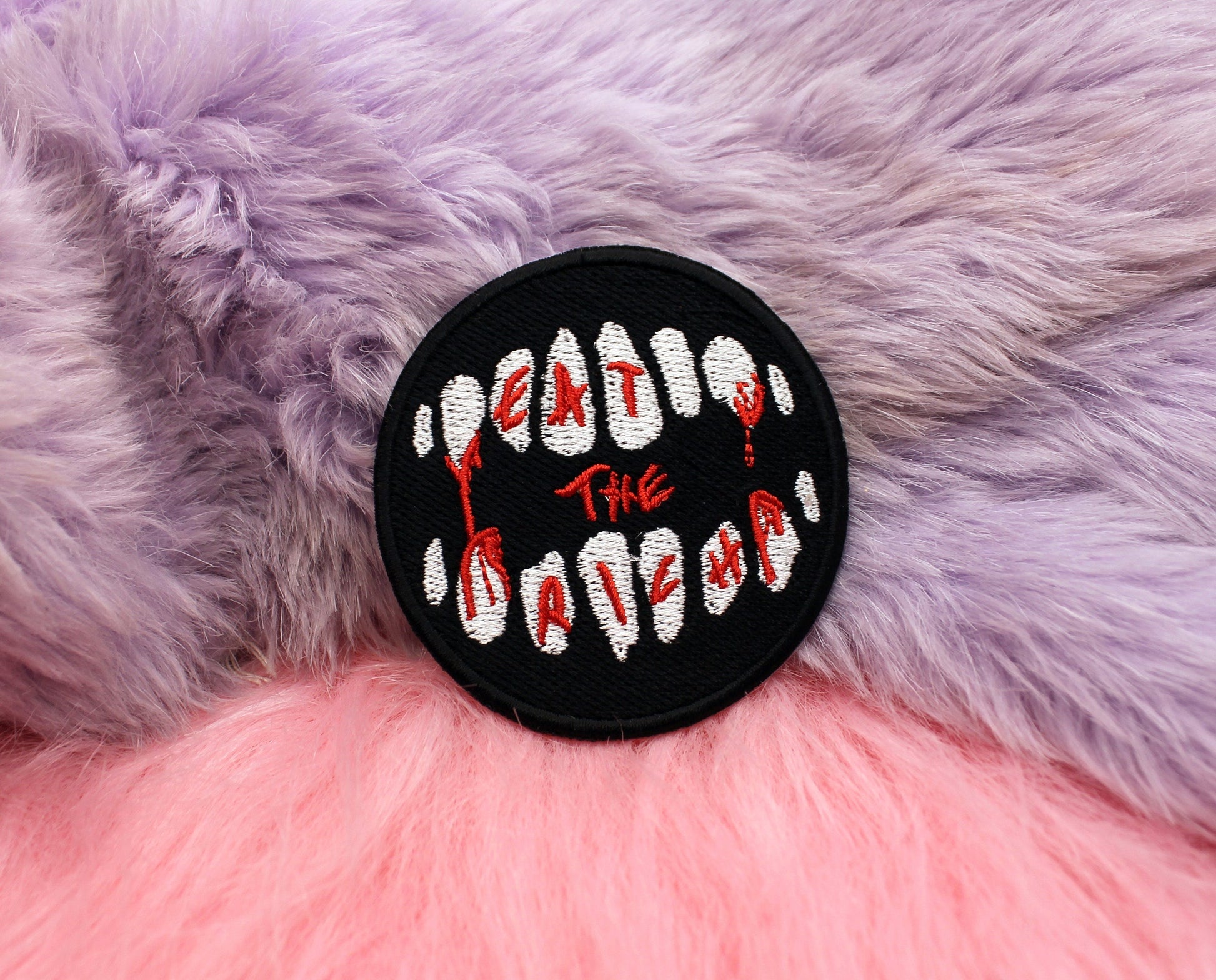 Eat The Rich Iron-On Patch (60mm) - leftist teeth embroidered patch
