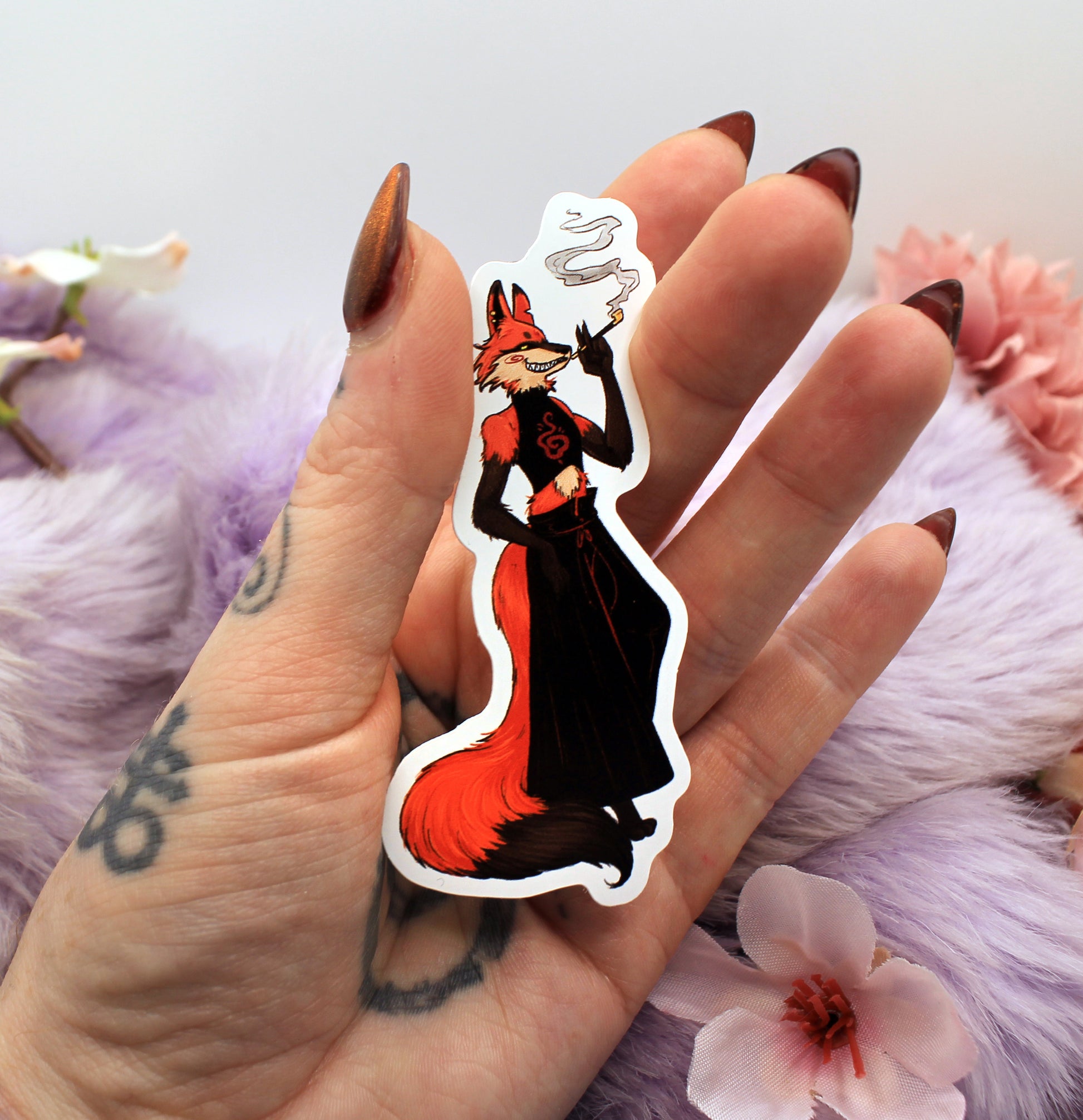 Enohki Smoking Fox Sticker (8cm) - The Nightingale Dragon Series