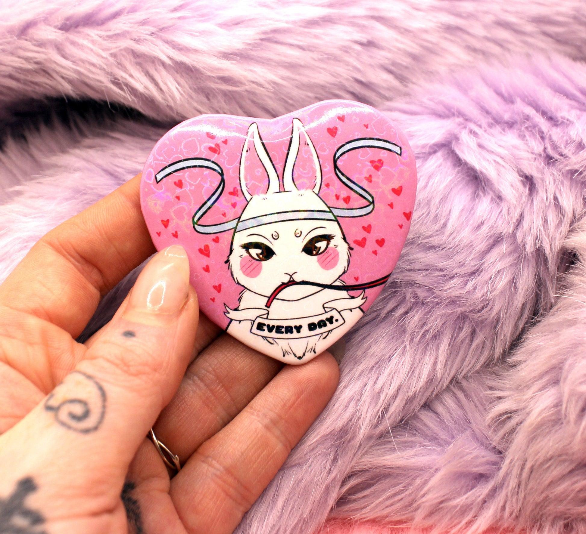 This Mo Dao Zu Shi inspired Lan Wangji badge is heart shaped with a sparkly holographic finish.