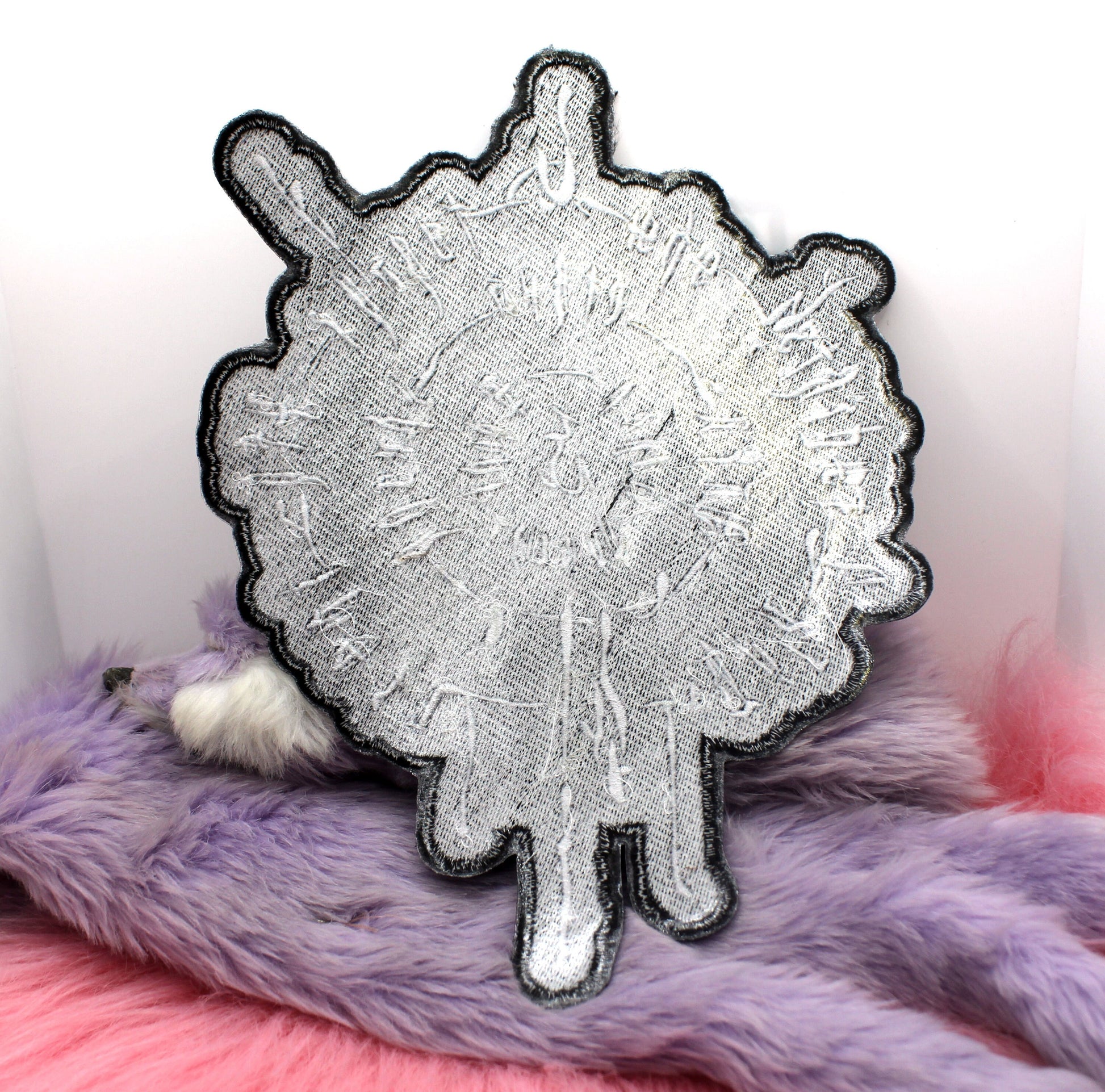 This Jumbo Astarion patch comes with an iron-on adhesive back for easily application, but can also be sewn onto the desired garment or bag.