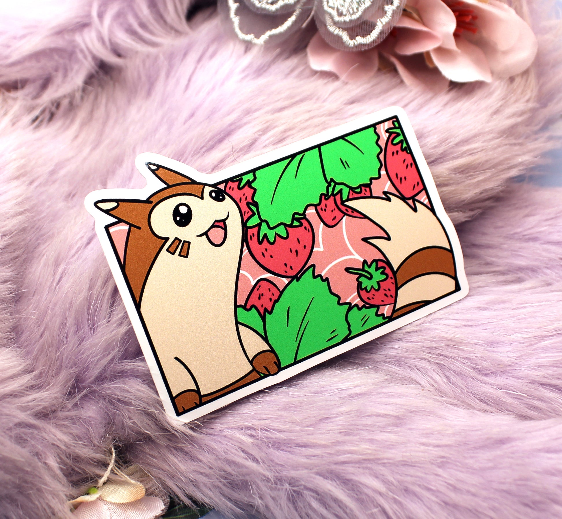 Furret Strawberry Bush Pokemon Sticker (7cm)