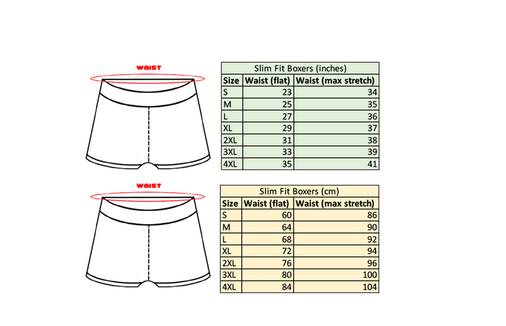 See the final image for the Size Chart. If between sizes on any measurements, I recommend going up one size. Please note these are slim fit boxers, and therefore smaller than my gym shorts.
