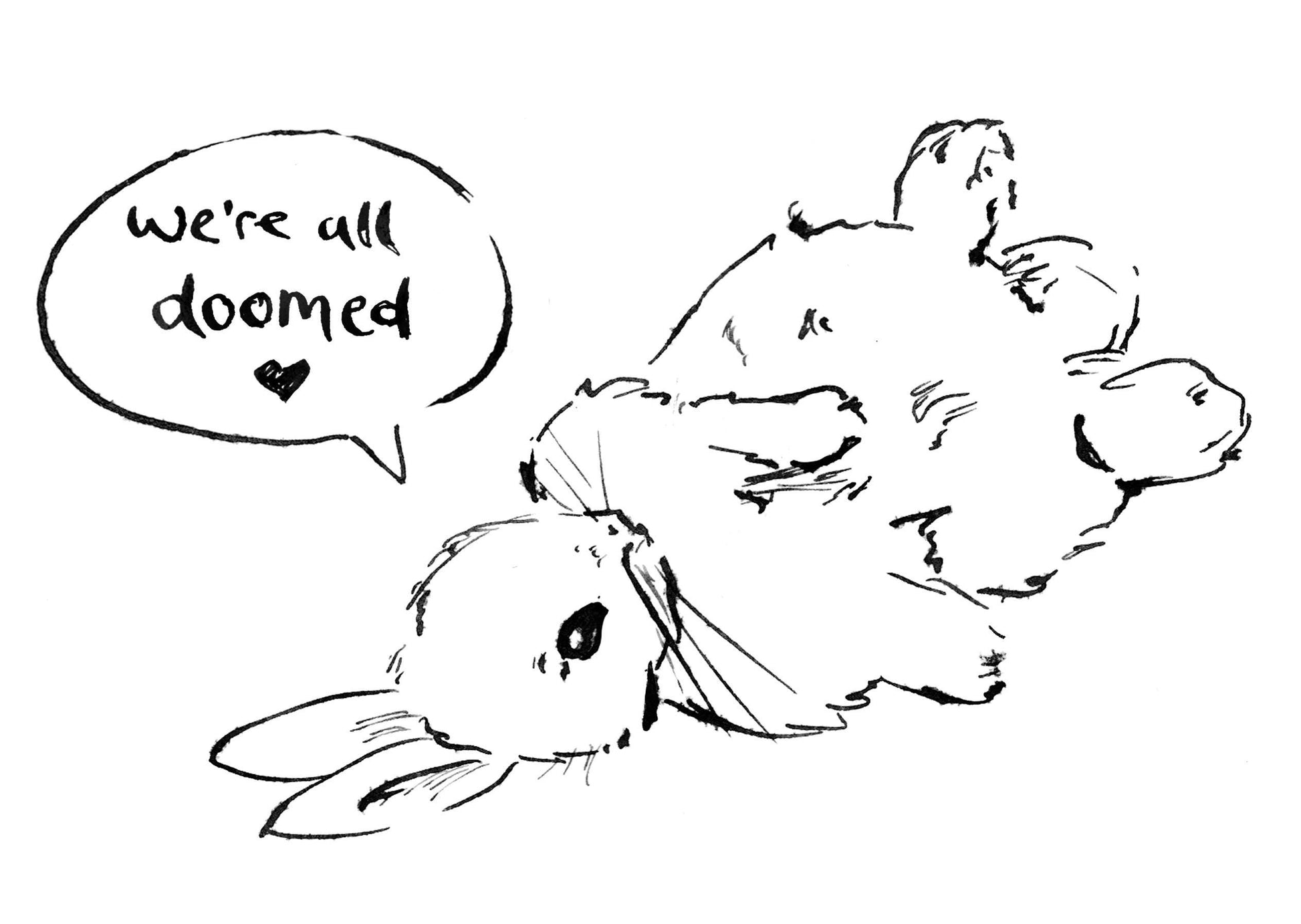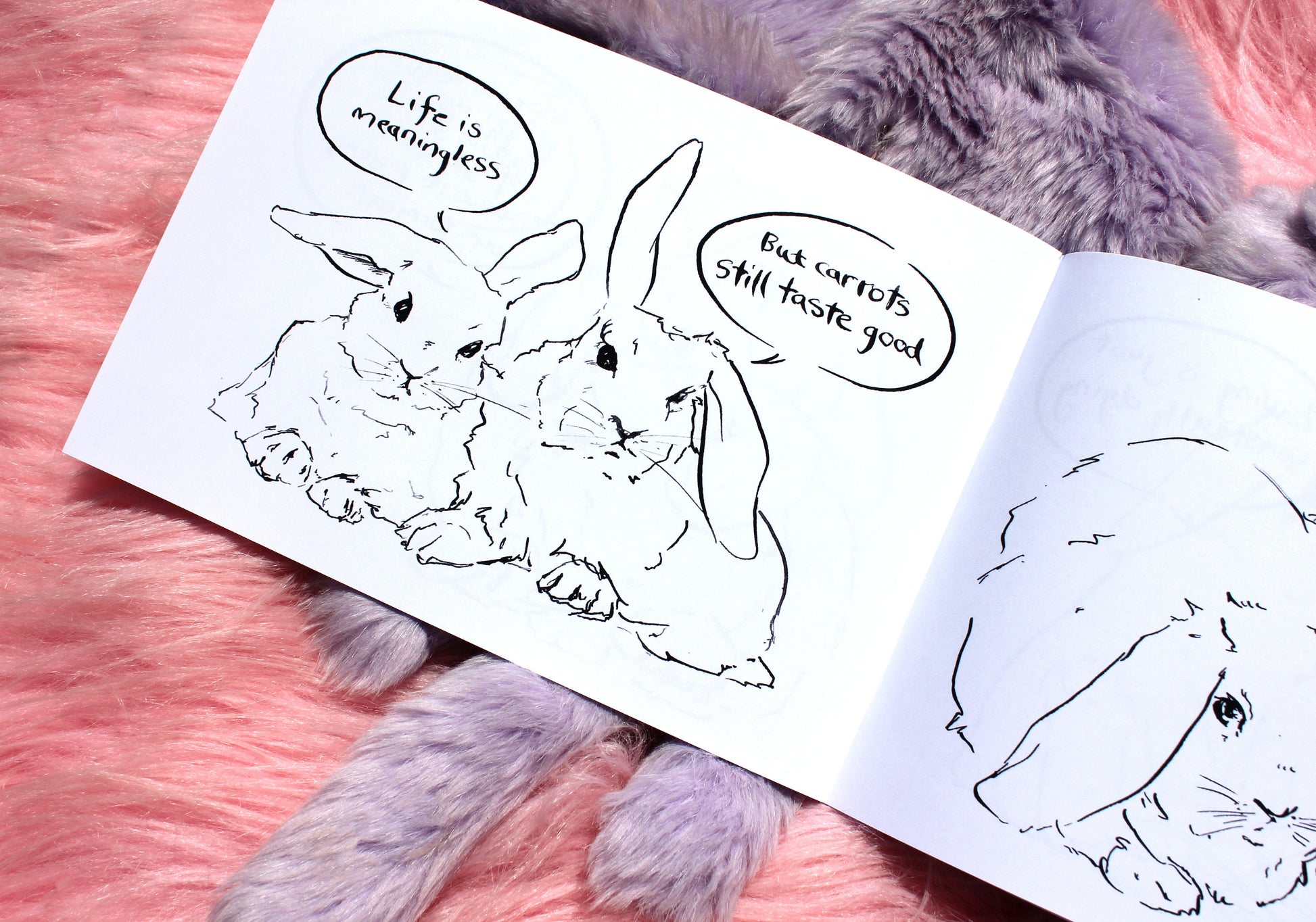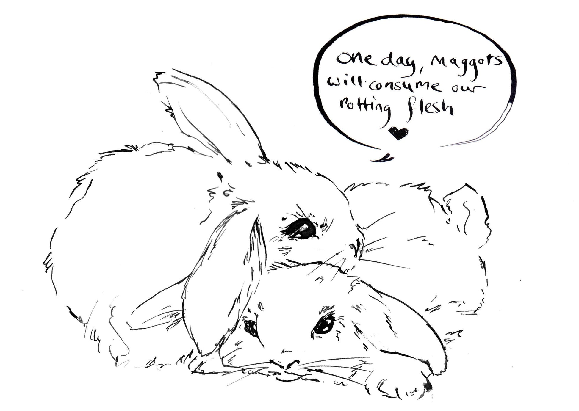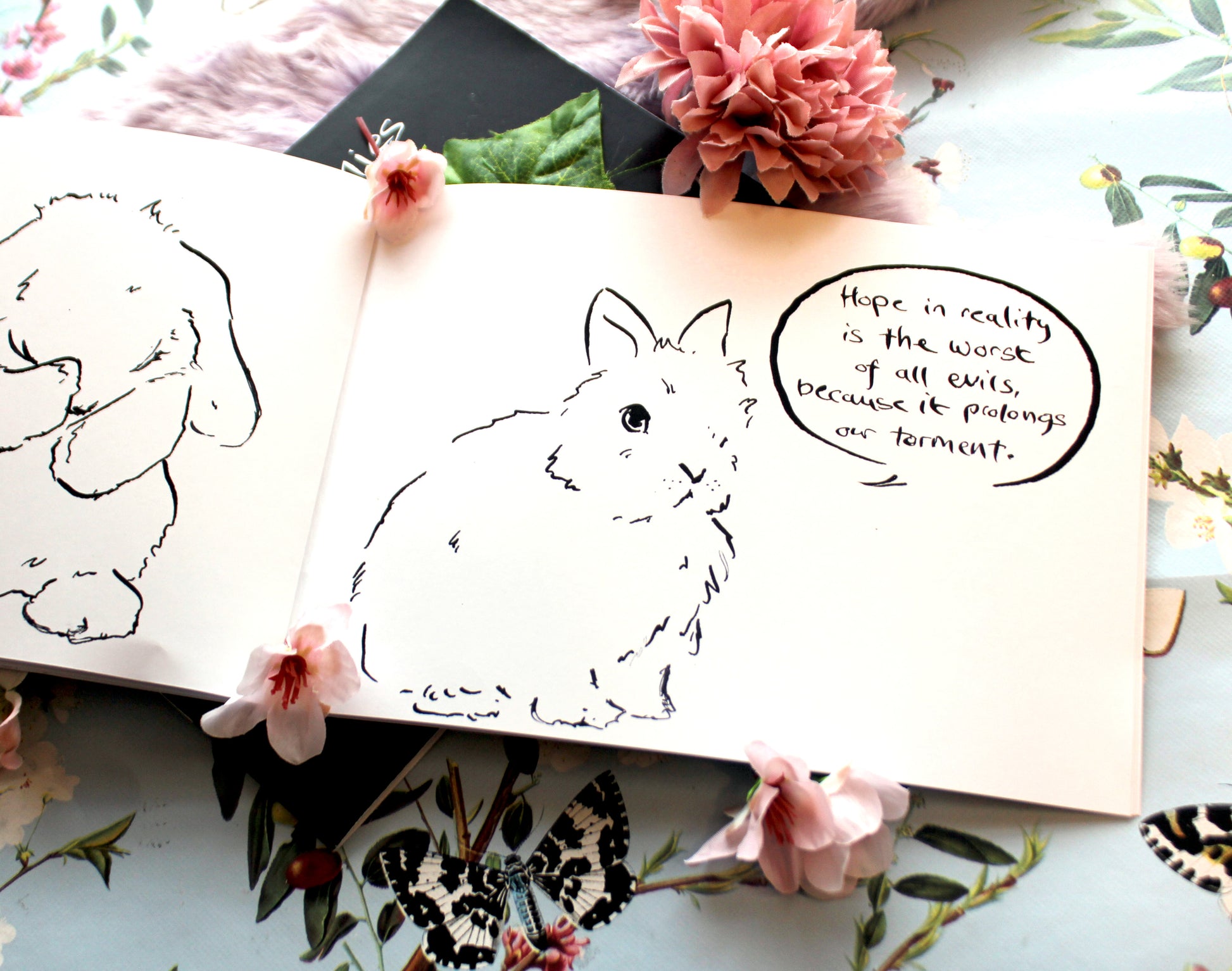 Nihilist Bunnies is a series of cute rabbits contemplating the futility of existence, over 20 adorable quill and ink illustrations to distress, depress and delight you.