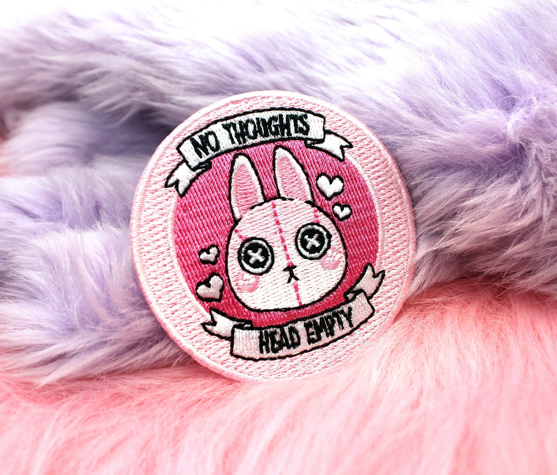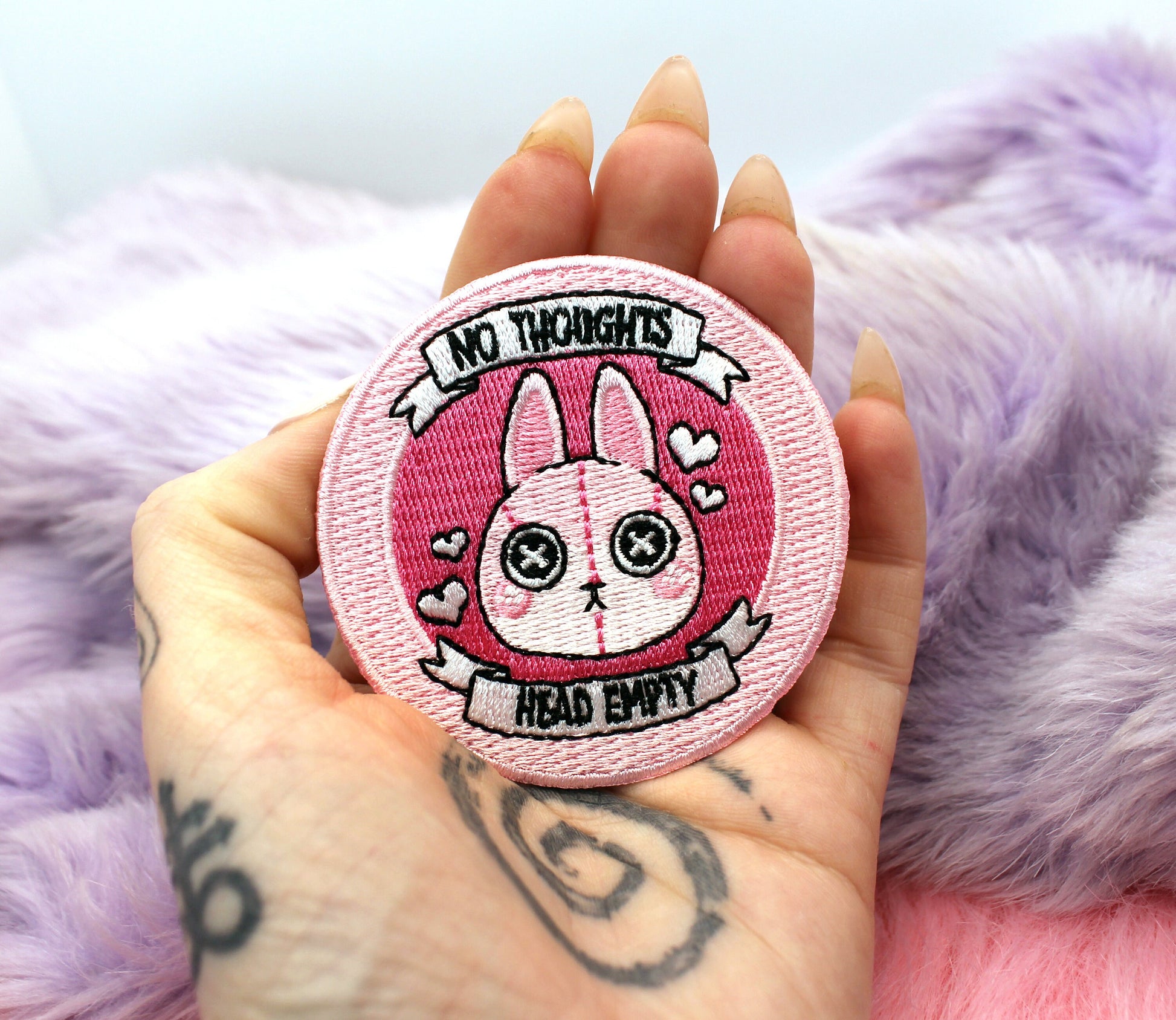 No Thoughts Head Empty Iron-On Patch (60mm) - bunny rabbit embroidered patch