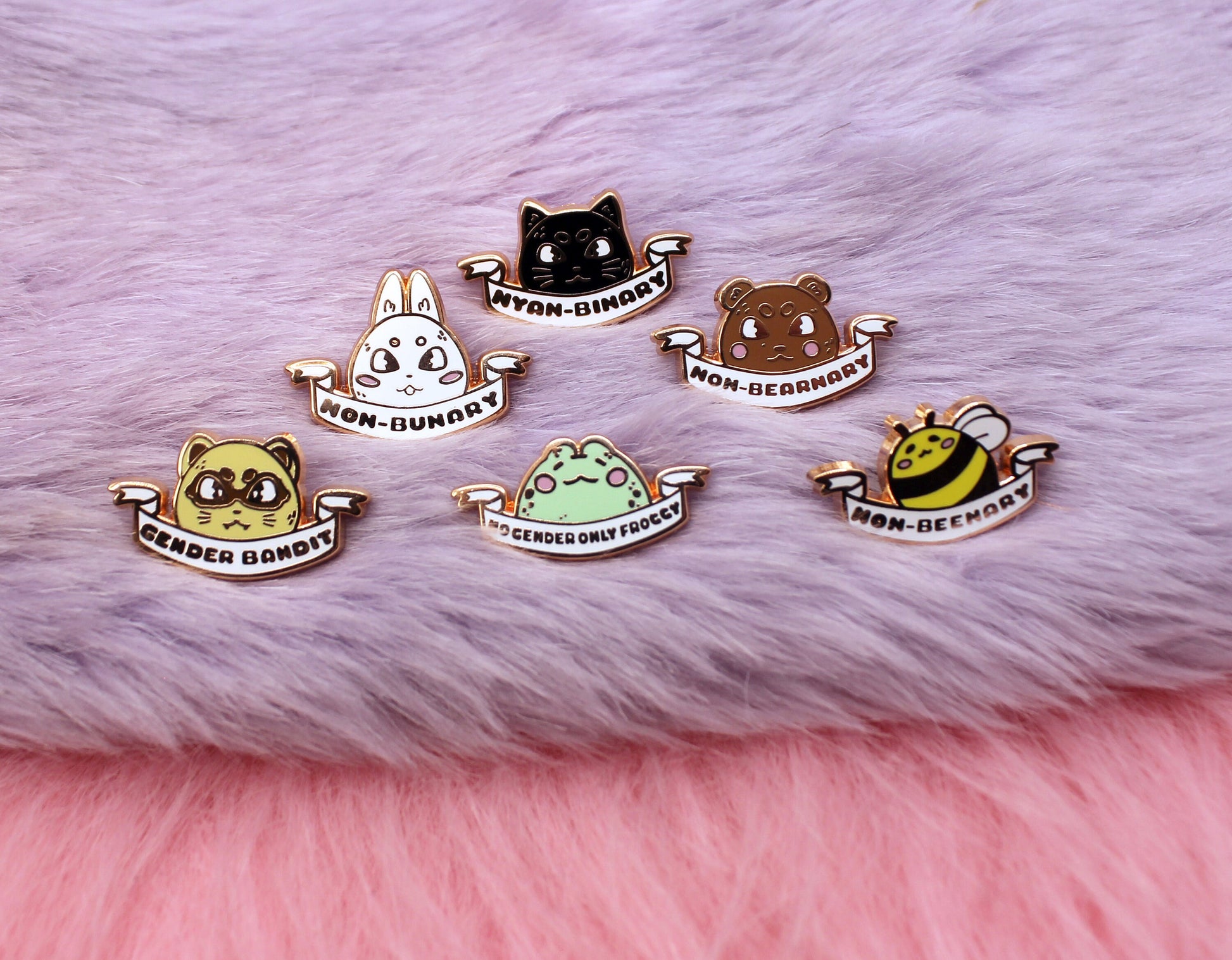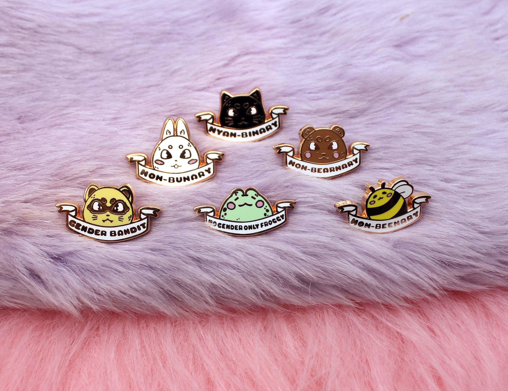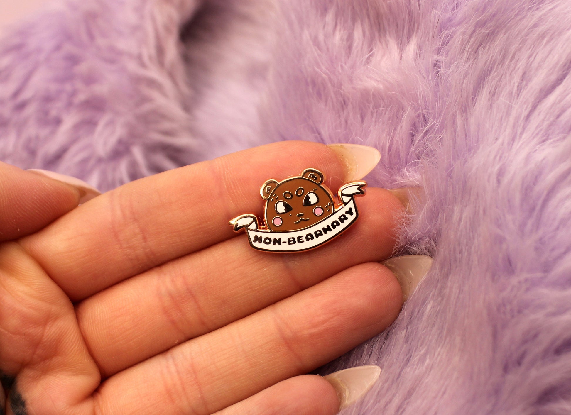 Non-Bearnary Enamel Pin (A Grade, Hard, Rose Gold) - Non-Binary Animal Puns