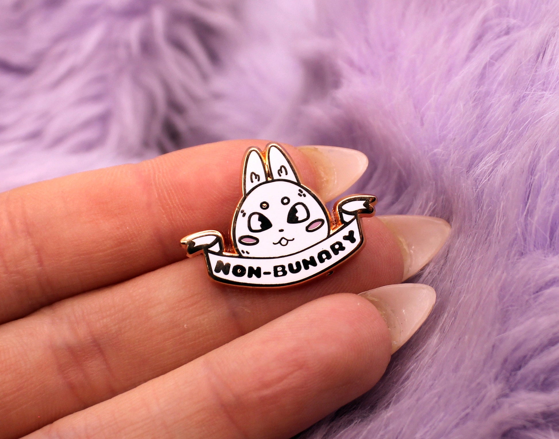 Non-Bunary Enamel Pin (A Grade, Hard, Rose Gold) - Non-Binary Animal Puns