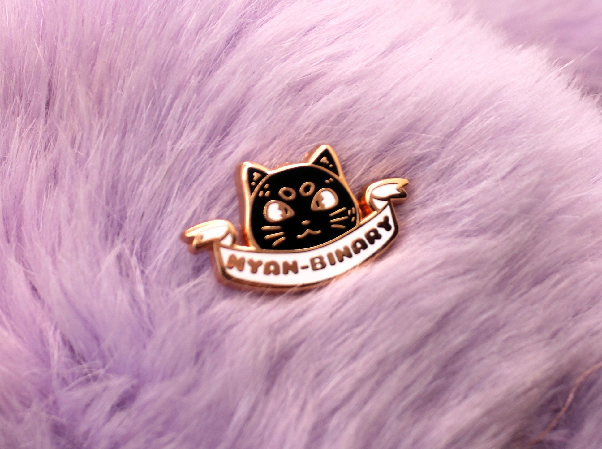 Nyan-Binary Enamel Pin (A Grade, Hard, Rose Gold) - Non-Binary Animal Puns