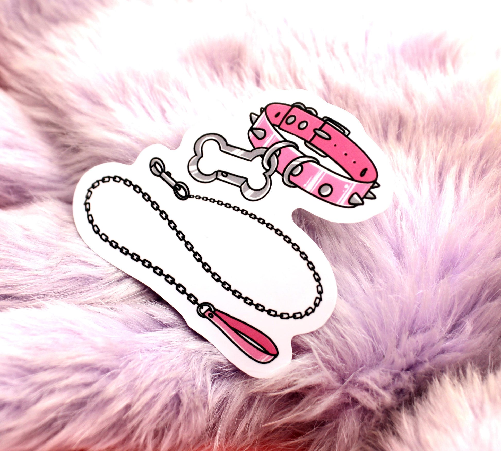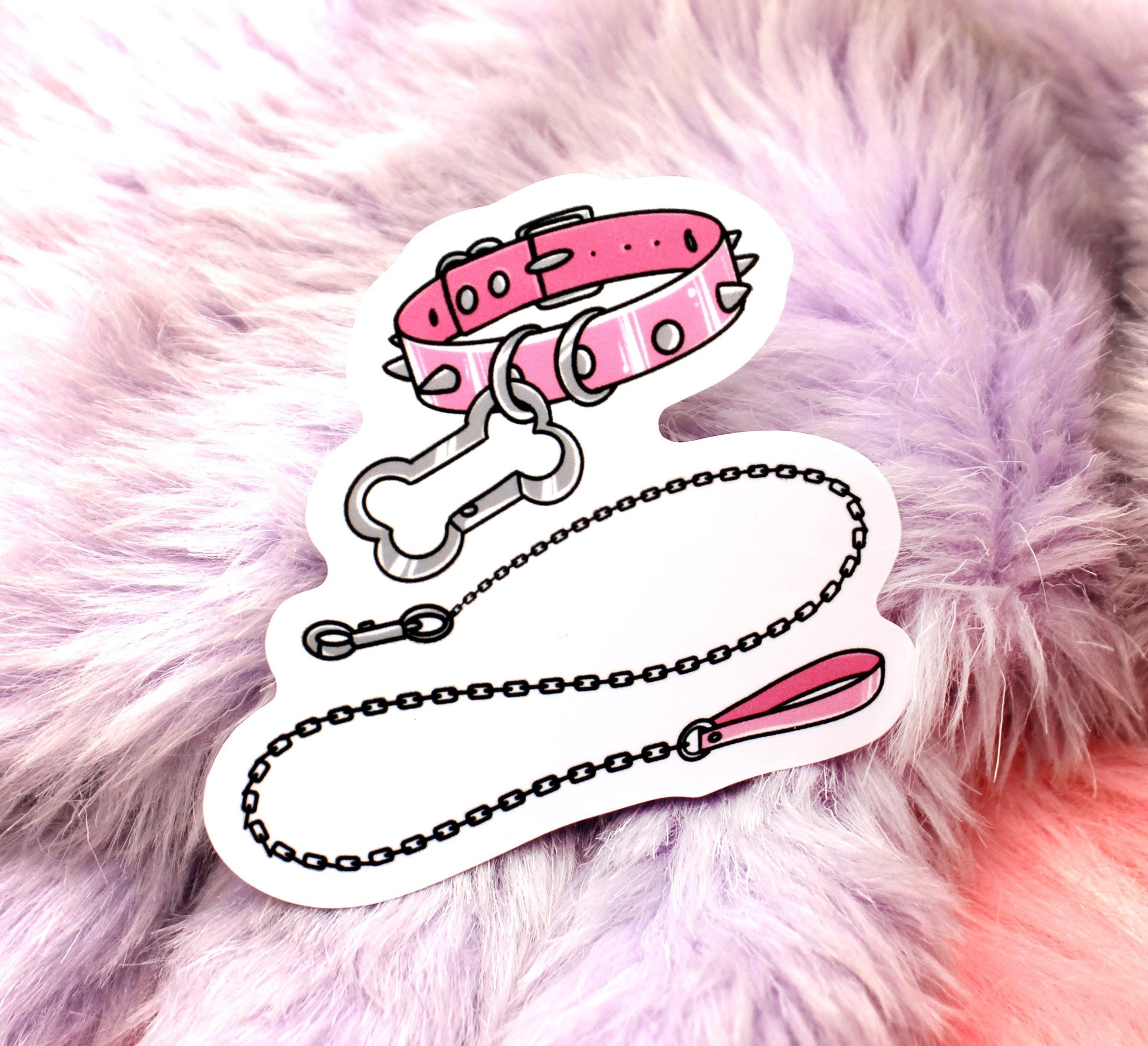 This pink spiked dog collar and lead sticker is 7cm in size, made with waterproof vinyl and has a self adhesive peel-able back.