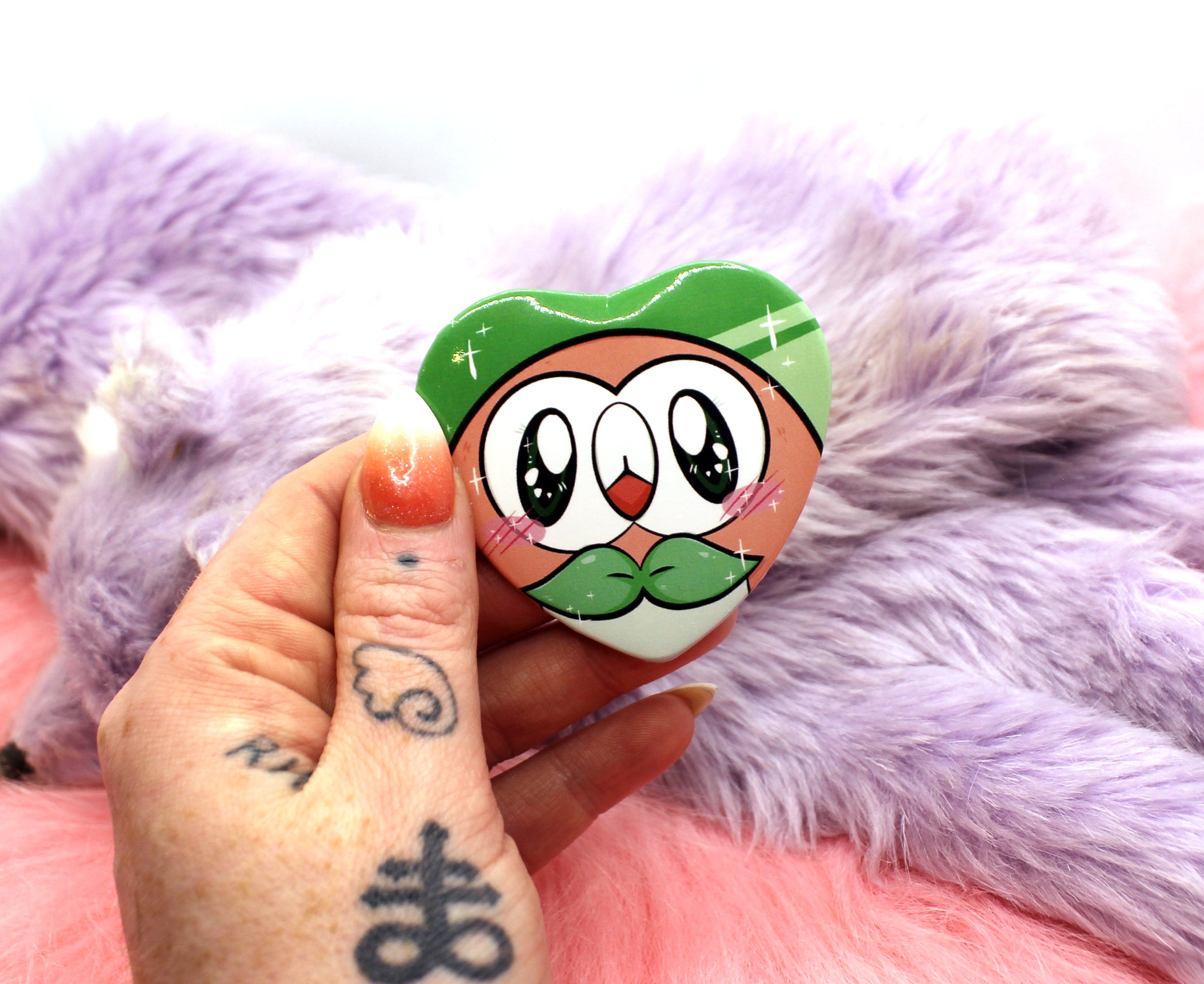 Rowlet Pokemon Heart Badge (55mm)