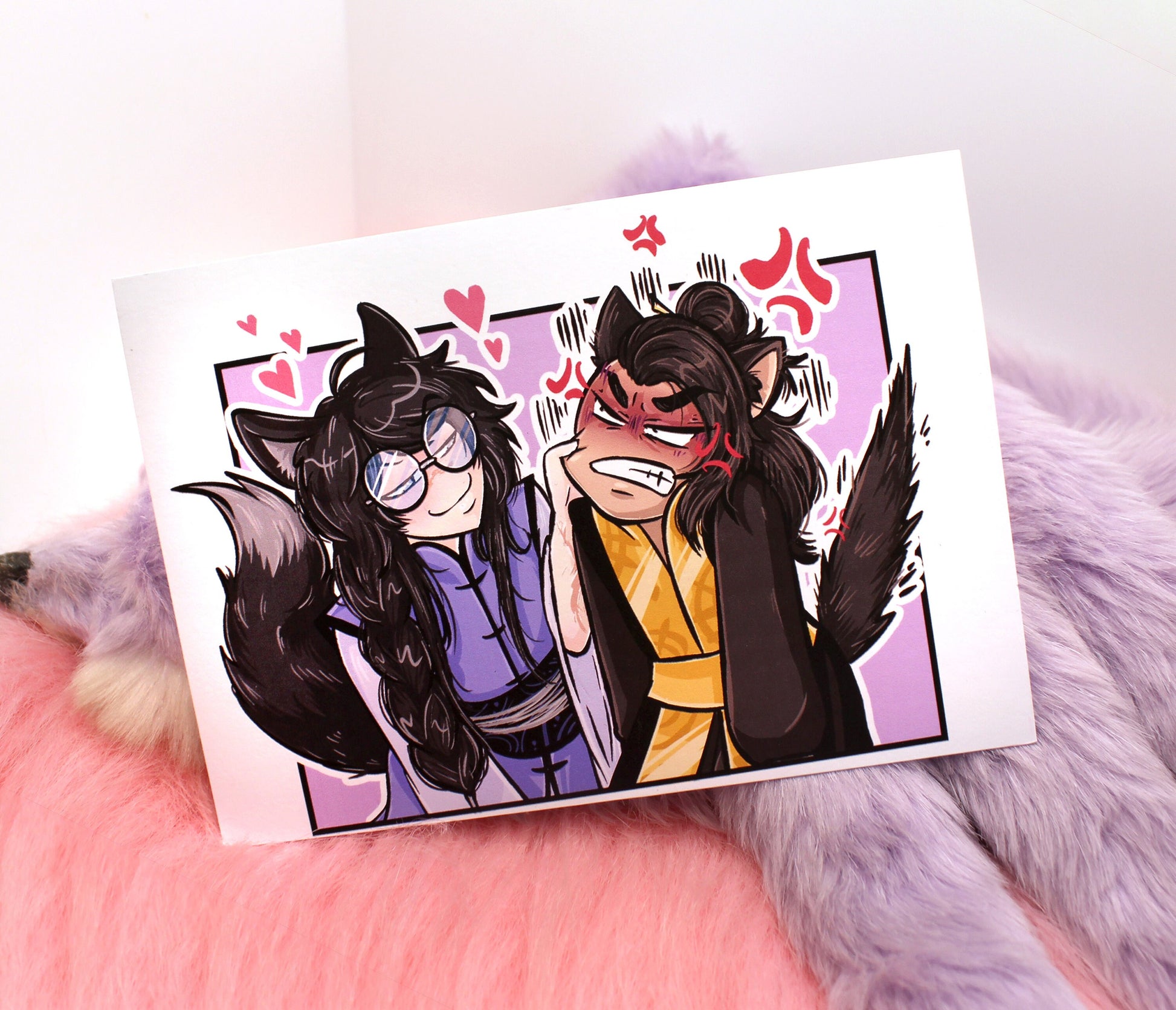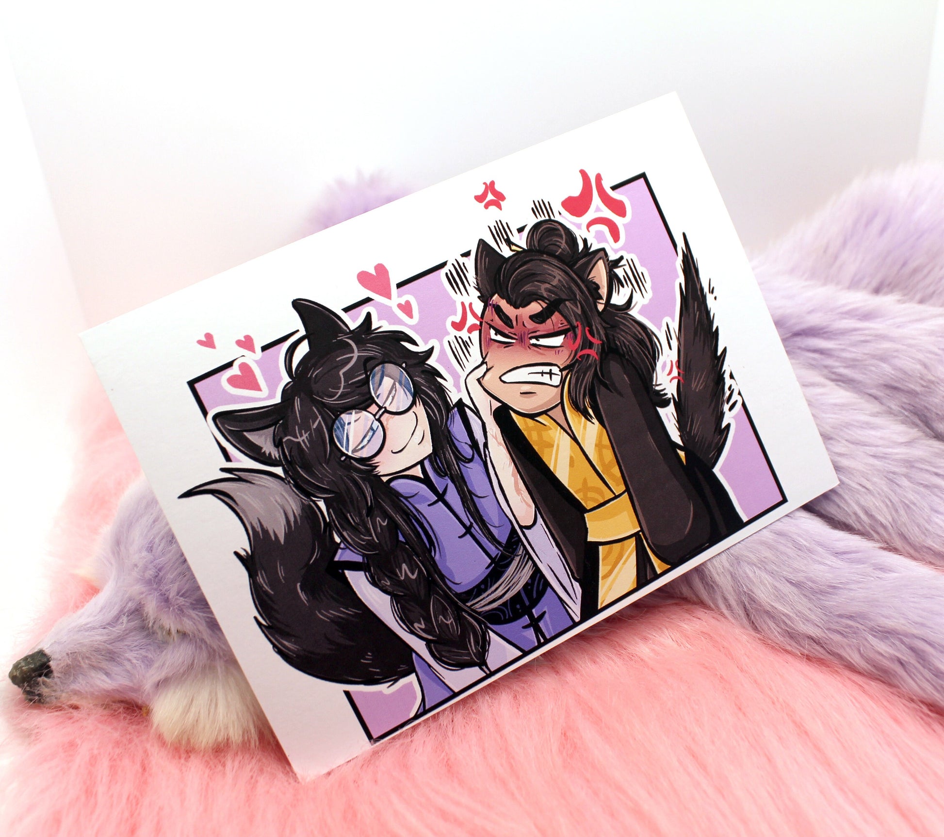 Smiling Fox Ginzin and Angry Cat Tomar Pair A6 Print - The Nightingale Dragon Series
