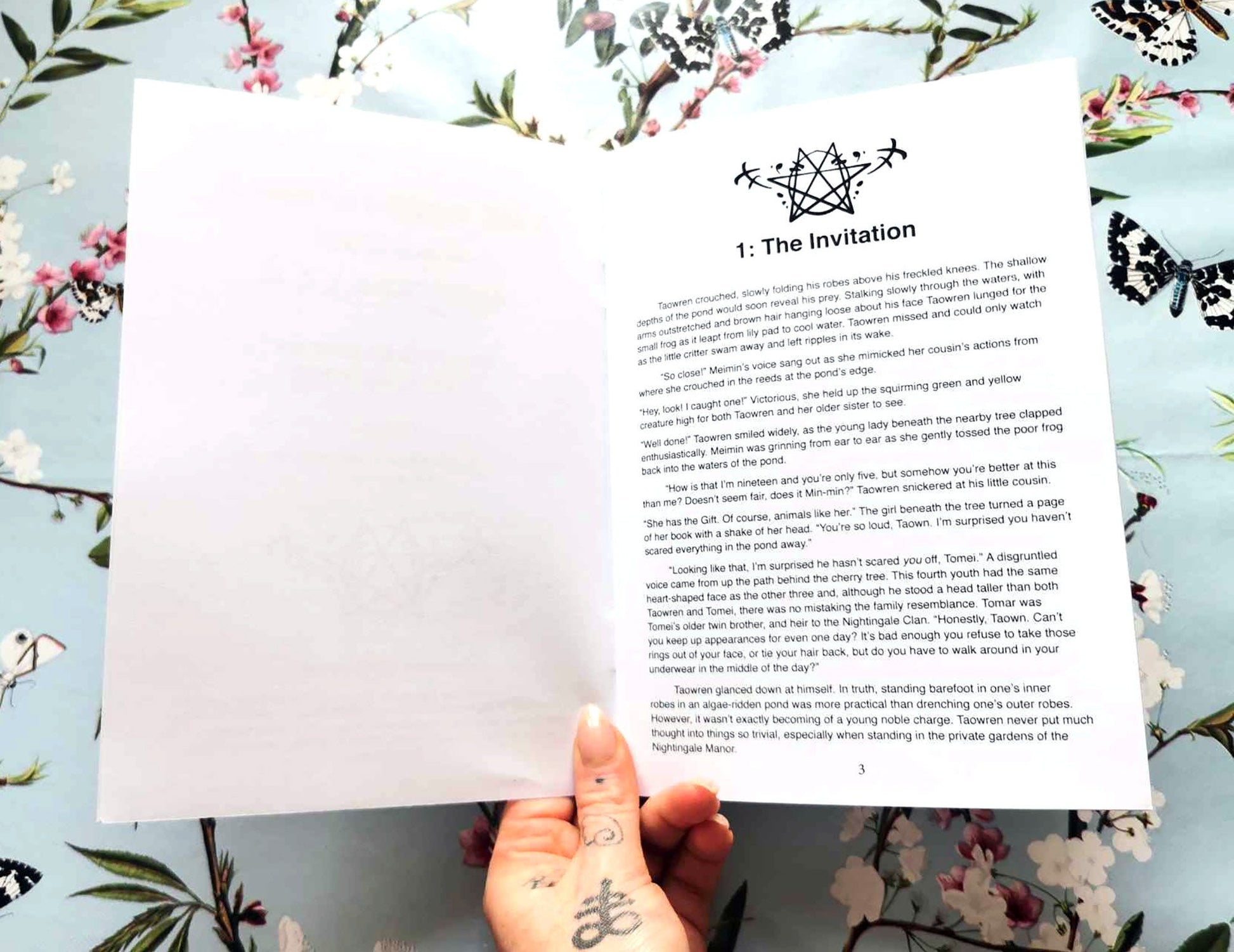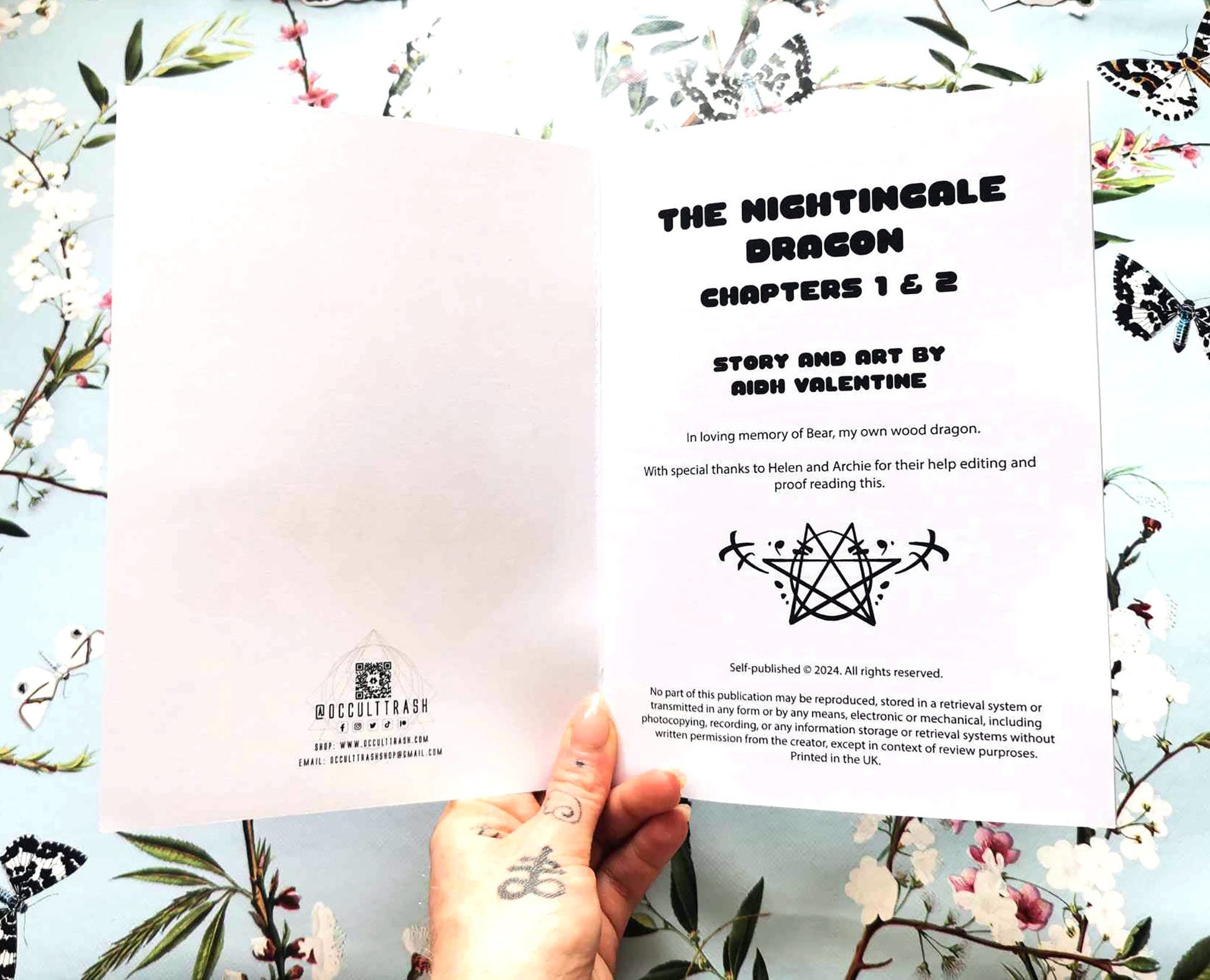 This listing is a physical small-press booklet of the first 2 chapters of my (Occult Trash) Original Web-Novel Series 'The Nightingale Dragon'.