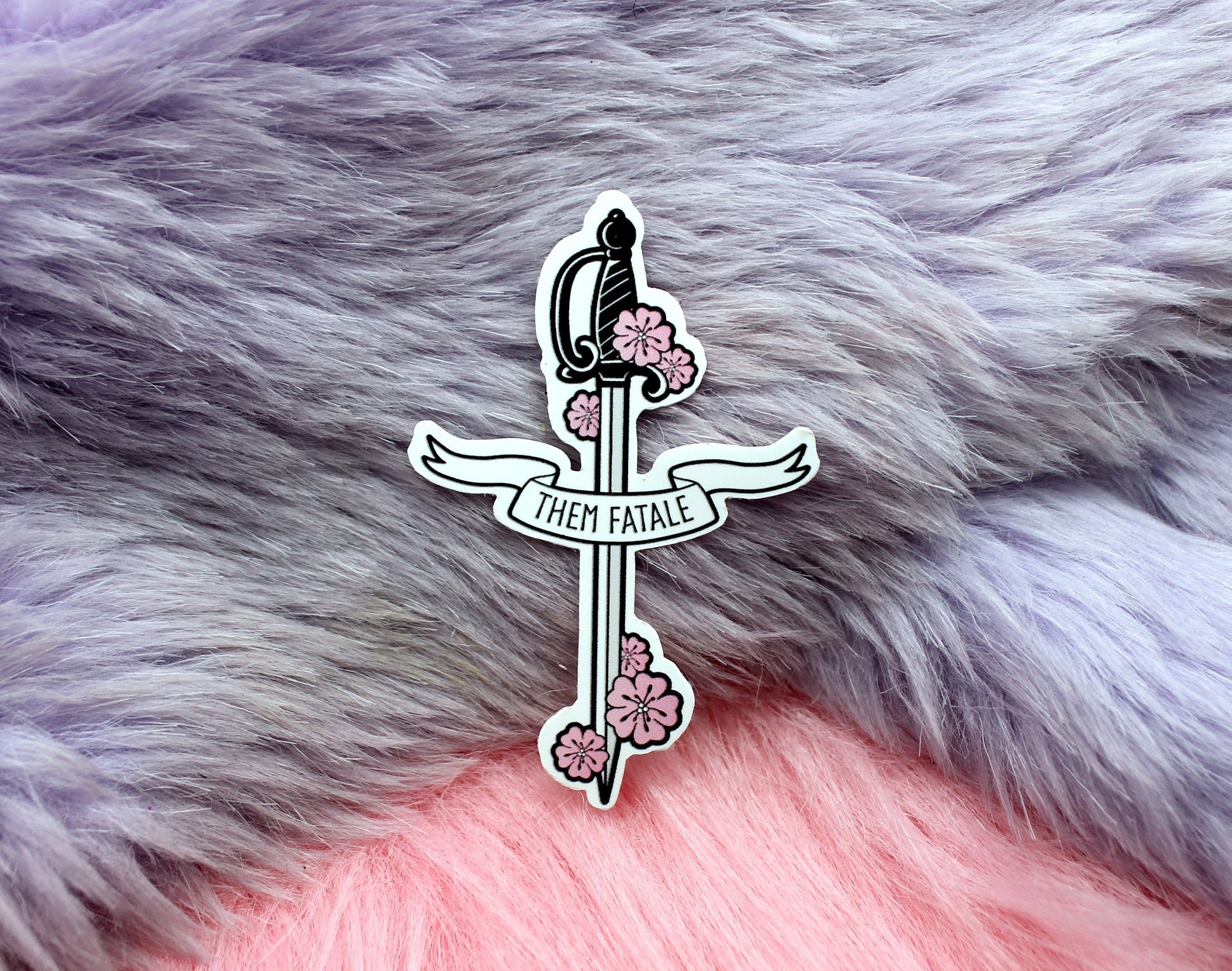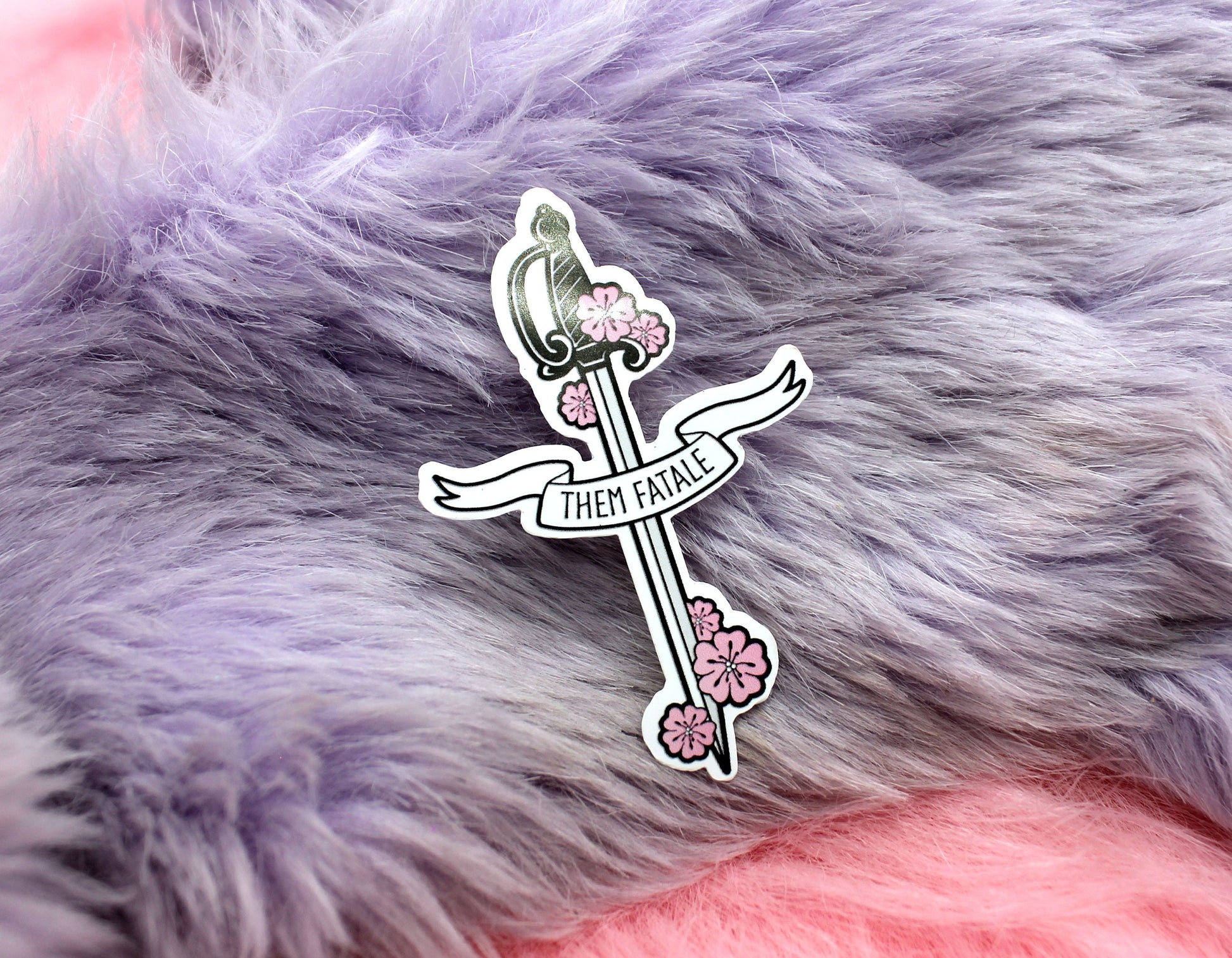 Them Fatale Sword Sticker (6cm) - Non-Binary Sword Sakura Cherry Blosssom Flowers LGBTQ