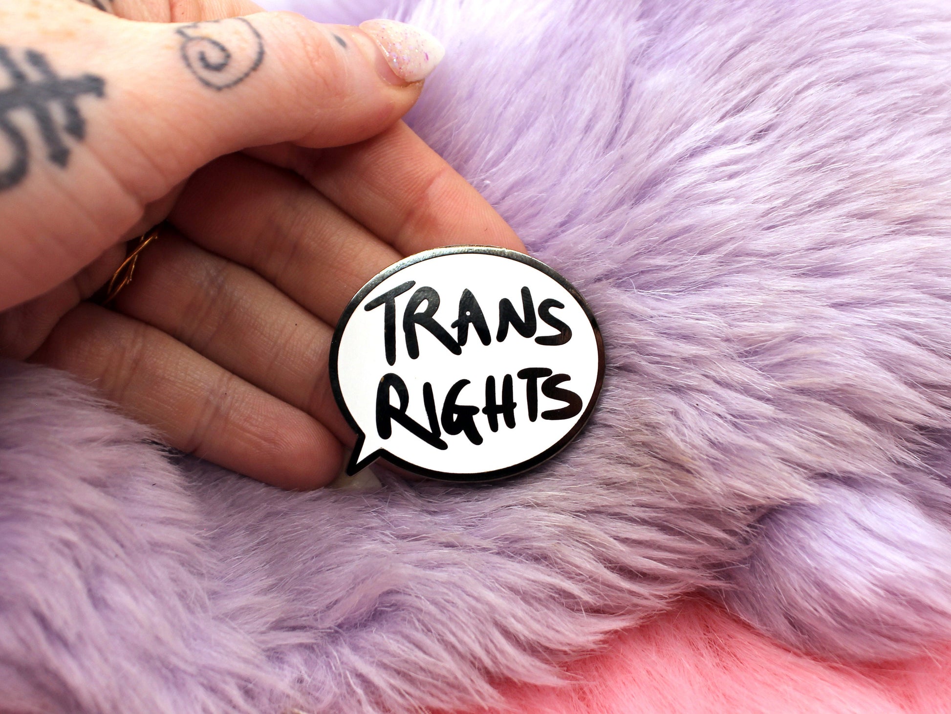 Trans Rights Speechbubble Enamel Pin (A Grade, Hard, Black Nickel)