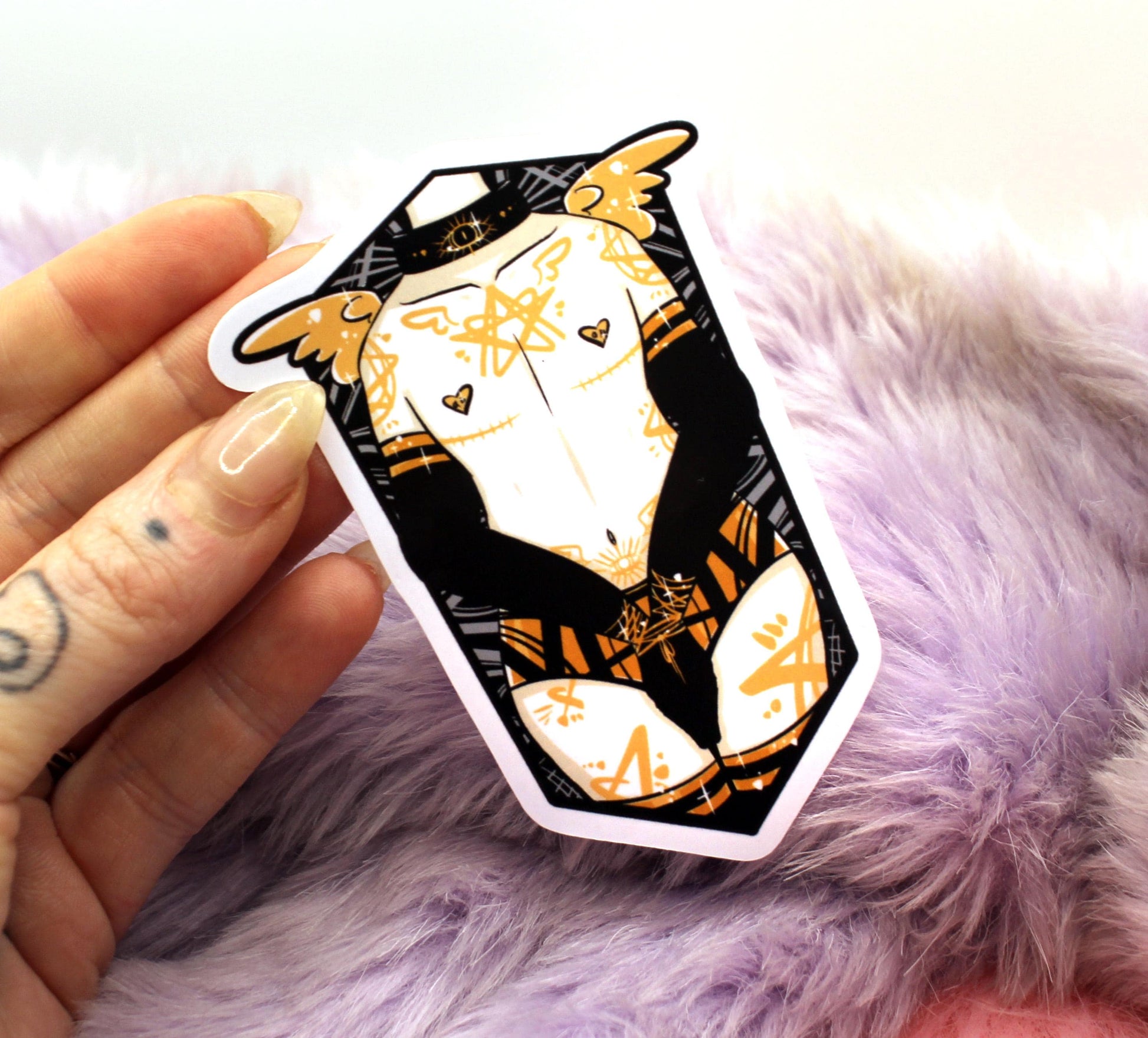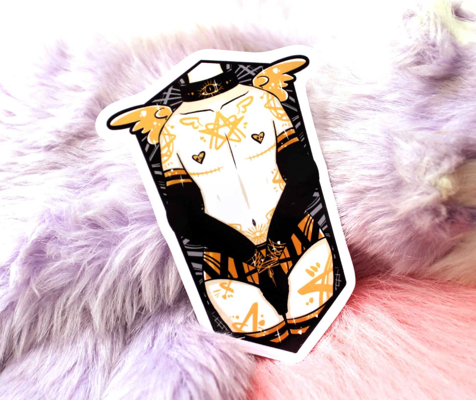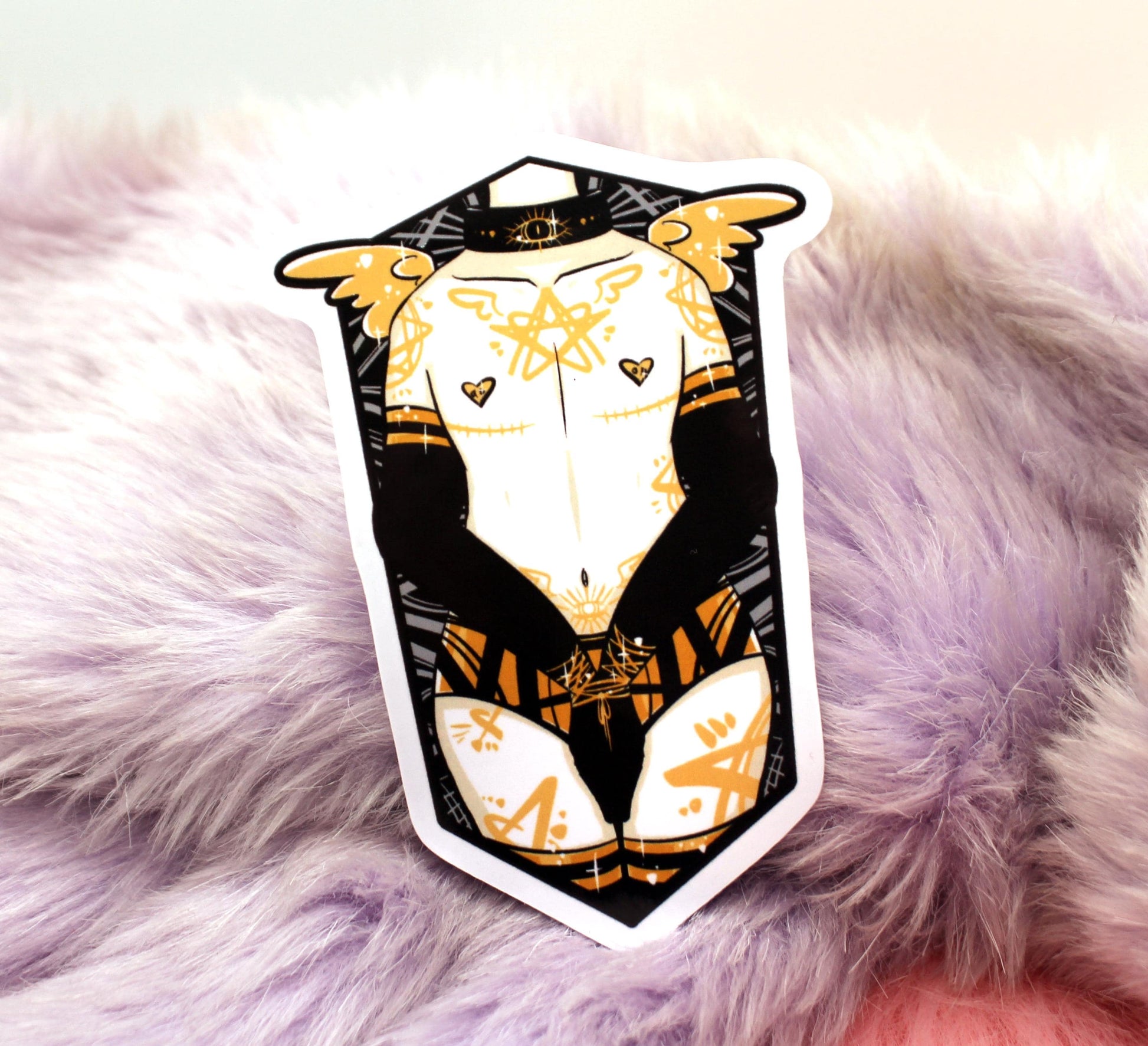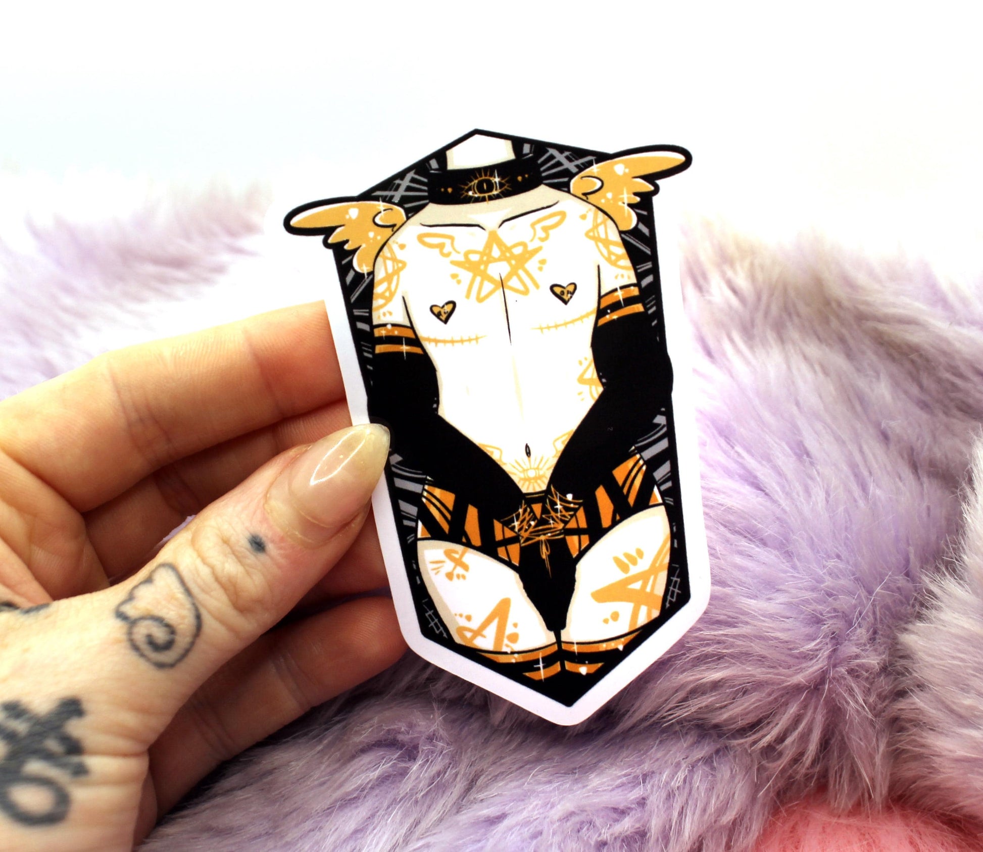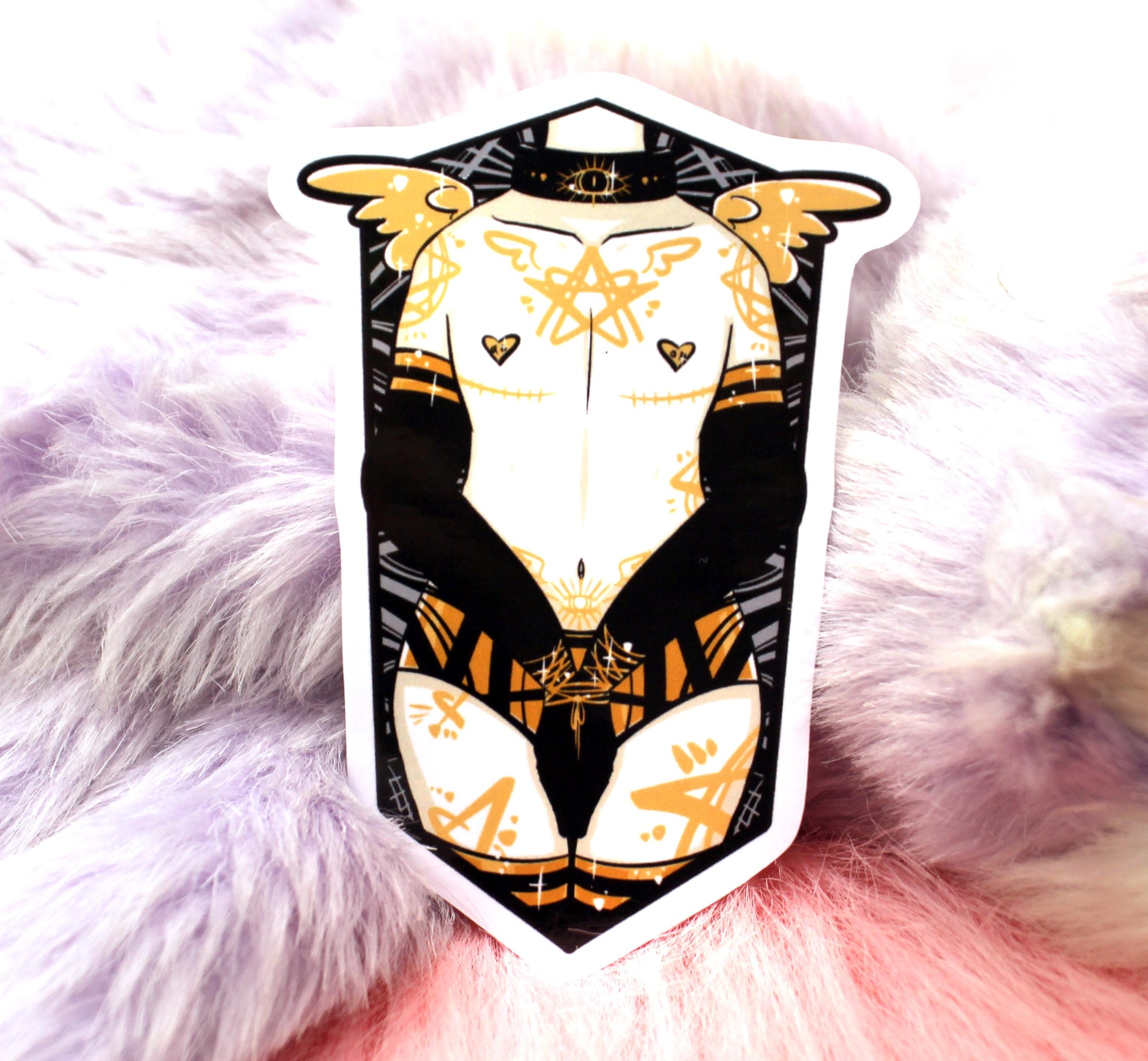 This Transmasc Angel Pin Up Sticker is 8cm in size, made with waterproof vinyl and has a self adhesive peel-able back.