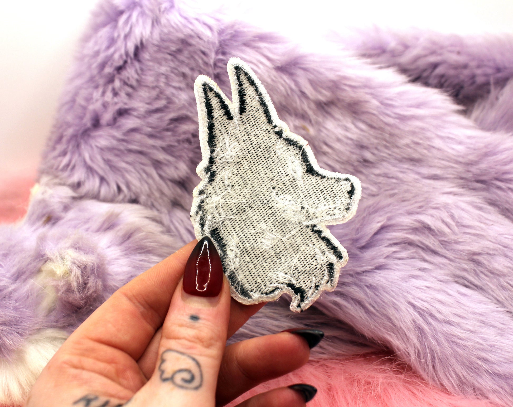 On the back of the patch, there's a heat-activated adhesive that can be activated with an iron. This allows the patch to be easily attached to a jacket, backpack, or any other fabric surface. Once applied, it will securely adhere to the fabric, allowing you to proudly display this striking black and white werewolf design wherever you choose.