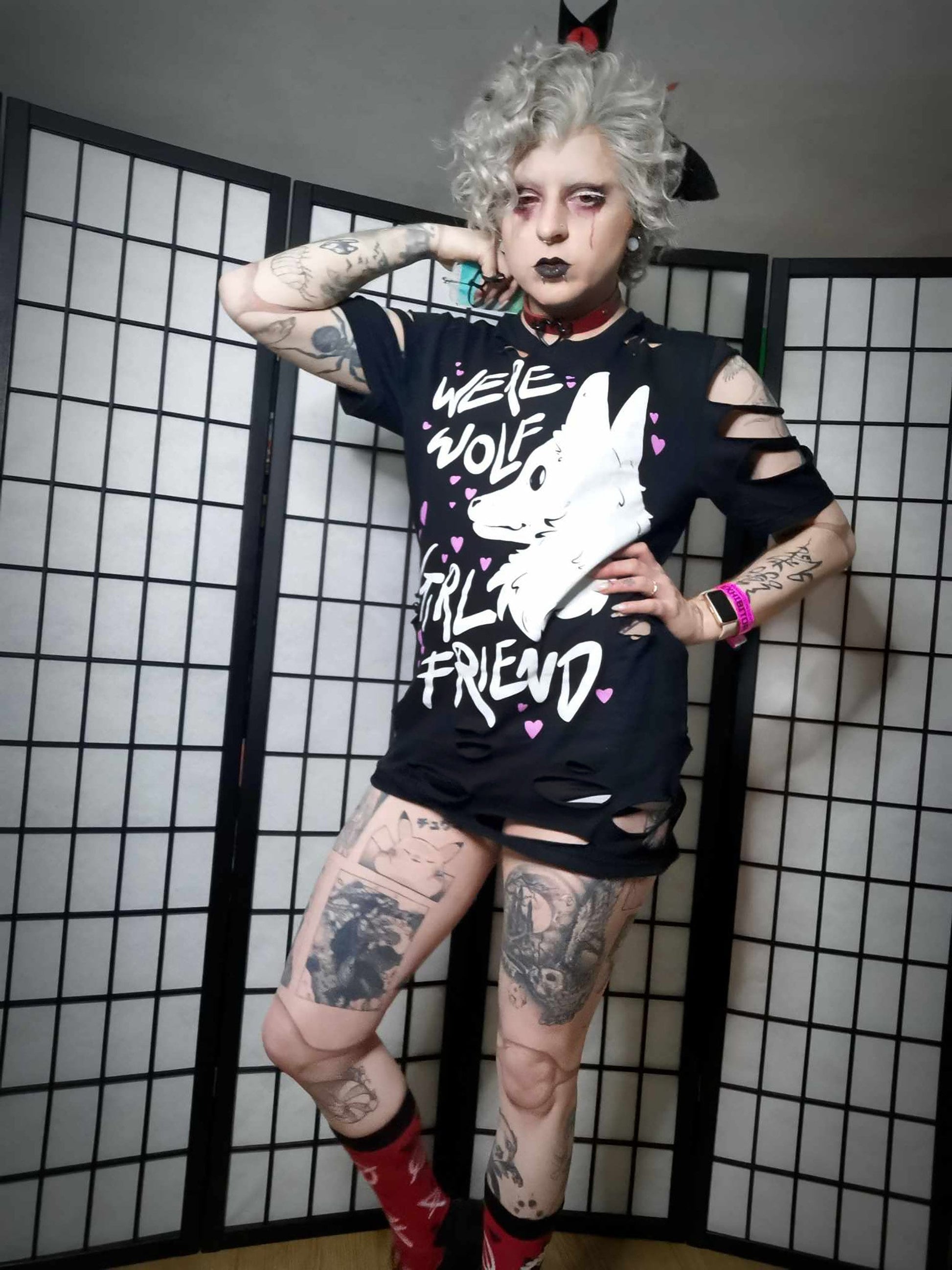 Distressed t-shirts have an additional £10 charge. This is to cover the time and labour involved in distressing each t-shirt. They are done by hand, so no two are the same! One t-shirt can take between 30 minutes to an hour.