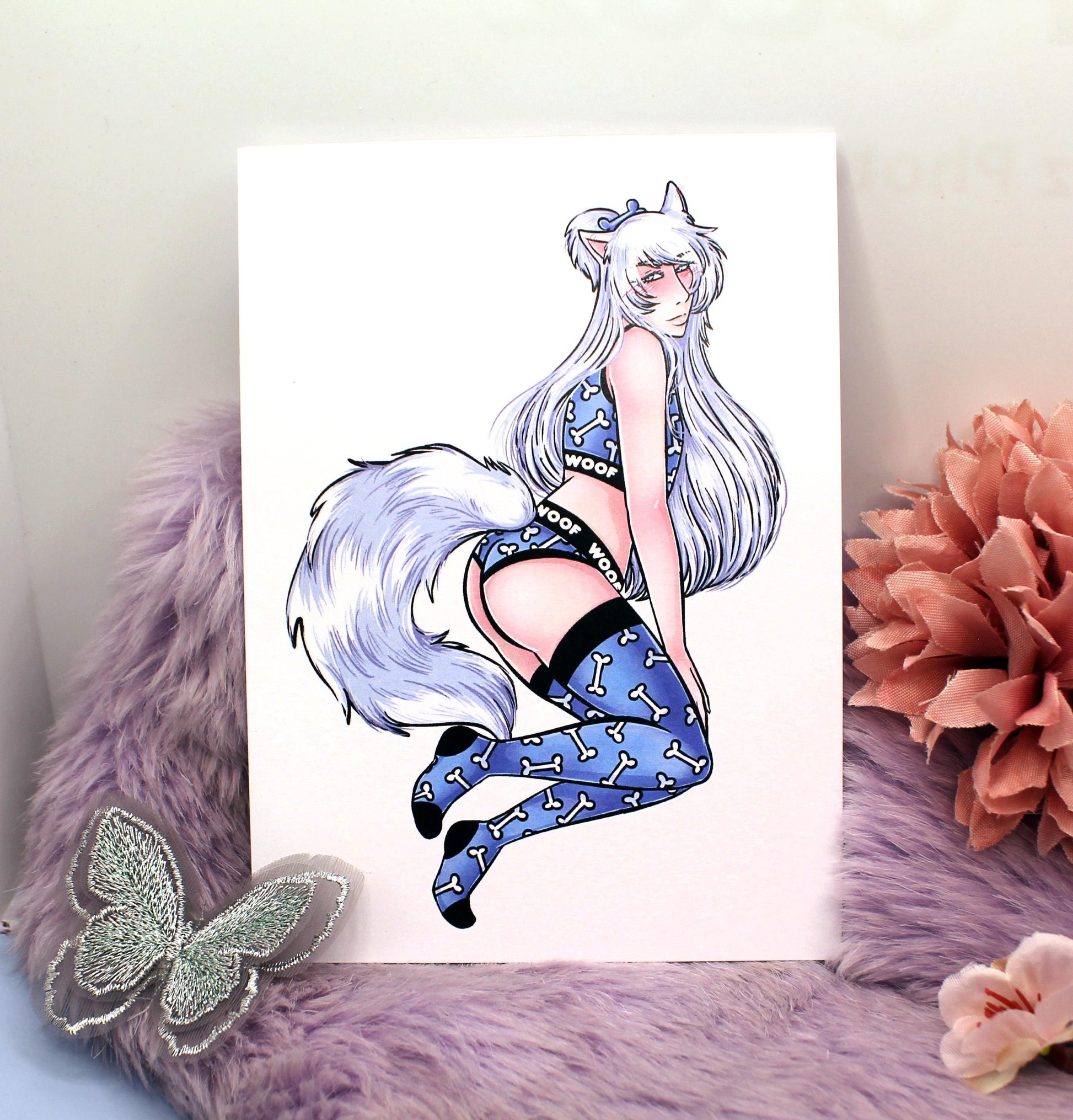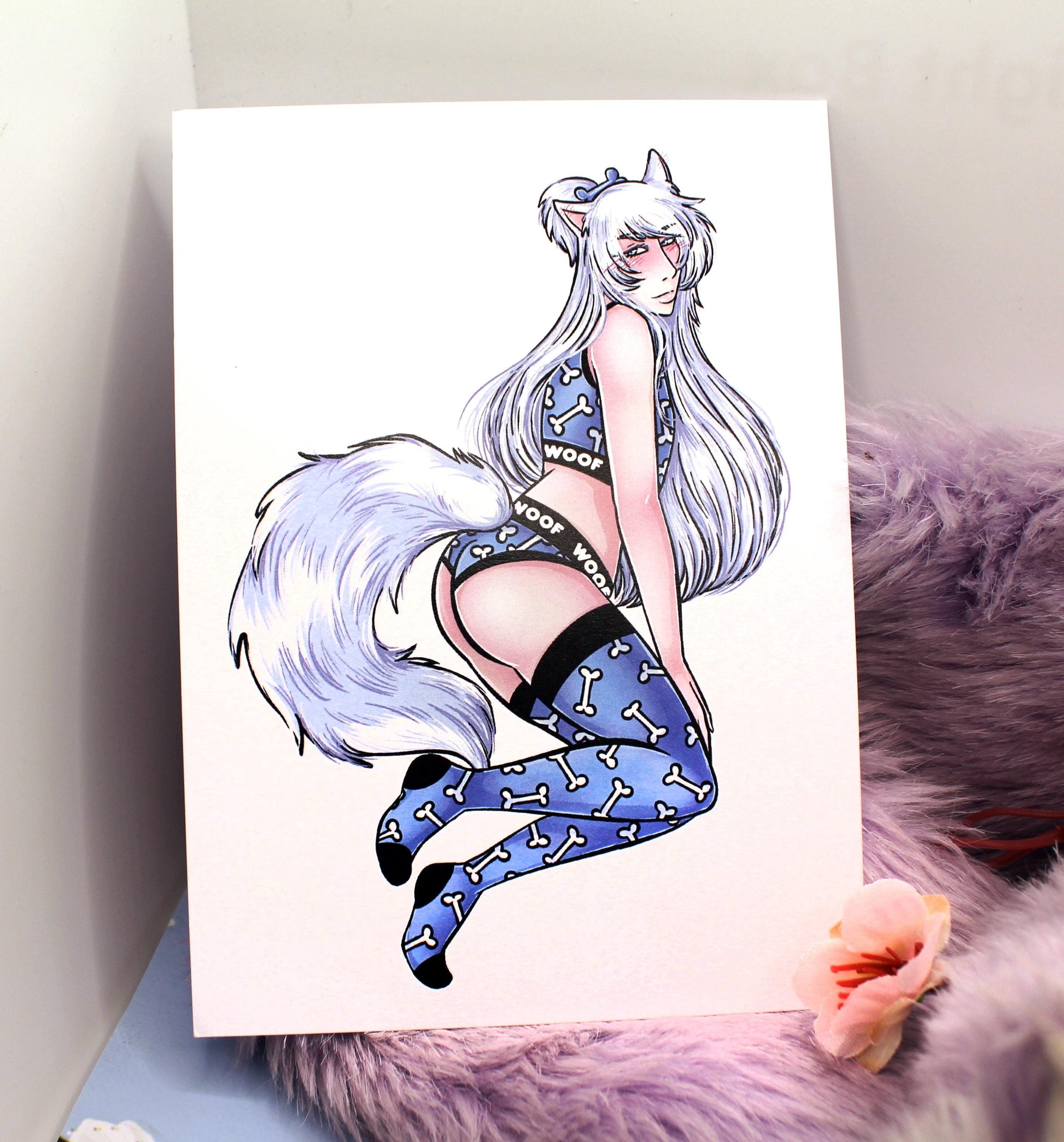 This Woof Woof Femboy Brayandli Pin Up print is A6 in size, perfect for framing and using as wall decoration as well as using as a postcard!